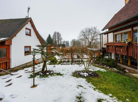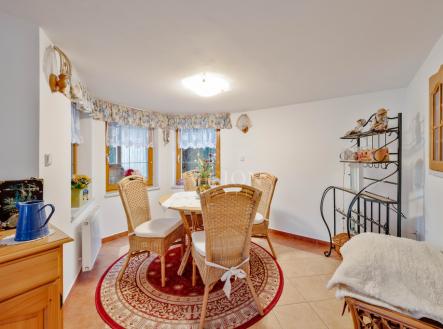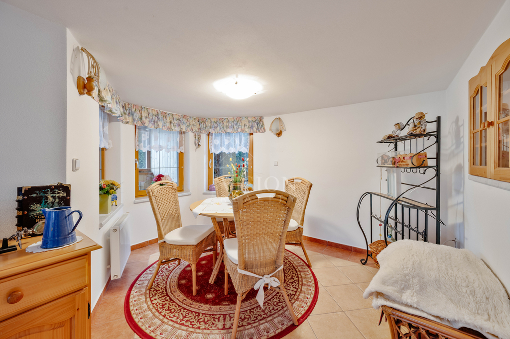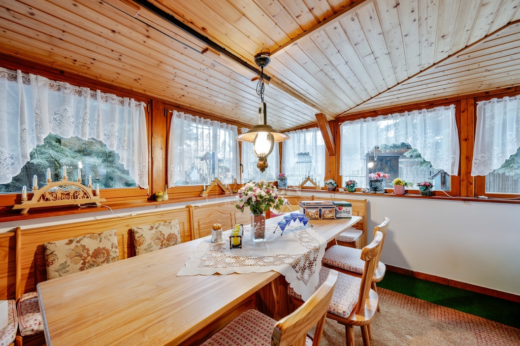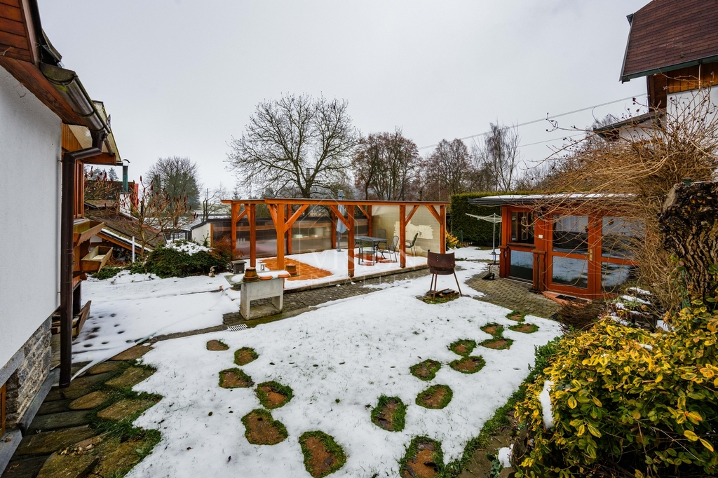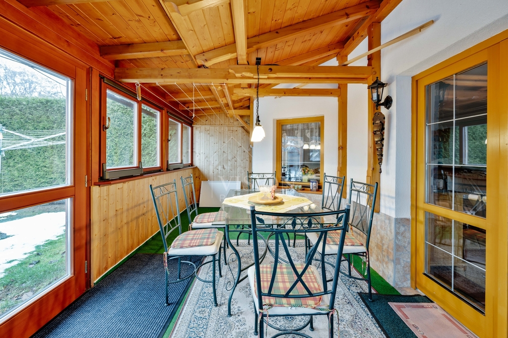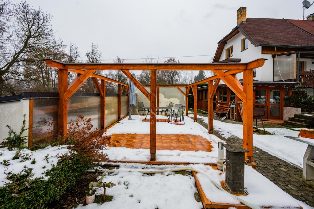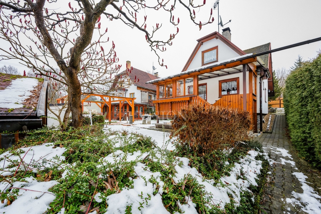 Nabízíme k prodeji prostorný a pečlivě udržovaný rodinný dům v obci Černovice, na adrese Husovy Sady 465. Nemovitost leží na pozemku o velikosti 934 m² a nabízí celkovou užitnou plochu 400 m². Dům je ve výborném technickém stavu a poskytuje komfortní zázemí nejen pro velkou rodinu, ale také možnost vícegeneračního bydlení či propojení bydlení s podnikáním. V přízemí domu se nachází prostorná kuchyně s krbovými kamny, která nejen vytvářejí příjemnou atmosféru, ale díky sálavému teplu také efektivně vytopí celou místnost. Na kuchyni navazuje společenská místnost ideální pro rodinná setkání či posezení s přáteli. Přirozené světlo zde doplňuje vstup na verandu, která rozšiřuje obytný prostor směrem do zahrady a poskytuje příjemné místo pro odpočinek. Velkým benefitem je i stylová vinotéka, která nabízí unikátní prostor pro uskladnění vína i drobné degustace. Druhé nadzemní podlaží působí jako samostatná obytná jednotka – díky vlastní verandě, velké kuchyni, útulnému obývacímu pokoji s krbovými kamny a koupelně poskytuje skvělé zázemí jak pro velkou rodinu, tak například pro vícegenerační bydlení. Třetí podlaží pak nabízí klidovou zónu se dvěma dětskými pokoji a prostornou ložnicí, odkud je krásný výhled na zahradu. Vytápění zajišťuje plynový kotel, dům je napojen na veřejný vodovod a disponuje vlastní čističkou odpadních vod. Přečištěná voda je svedena do nádrže a následně využívána pro zavlažování zahrady – praktické a úsporné řešení. Součástí prodeje je také plně vybavená chata umístěná na pozemku. V přízemí chaty se nachází předsíň, obývací pokoj s kuchyňským koutem a koupelna, v patře pak ložnice a dětský pokoj, což poskytuje ideální prostor pro návštěvy nebo rekreační využití. Na pozemku se dále nachází kryté parkování pro dvě vozidla, dílna a zcela zastřešený bazén, který umožňuje koupání i za horšího počasí a výrazně prodlužuje koupací sezónu. Zastřešení zároveň zajišťuje nižší nároky na údržbu a udržuje vodu v příjemné teplotě. Černovice jsou vyhledávanou lokalitou s nádhernou okolní přírodou, výbornou občanskou vybaveností a pohodlným spojením do blízkých měst, jako je Jindřichův Hradec, Kamenice nad Lipou nebo Jarošov nad Nežárkou. Okolí nabízí bohaté možnosti pro cykloturistiku, turistiku, koupání, zimní sporty i houbaření. Jde o ideální místo pro klidné rodinné bydlení se snadnou dostupností všech potřebných služeb. Pro více informací kontaktujte makléře!