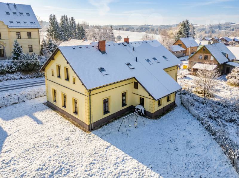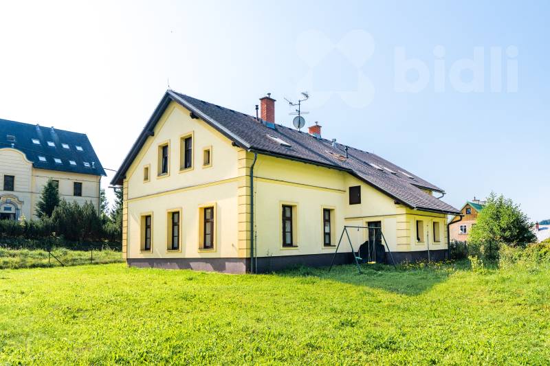 Hledáte bydlení nebo místo k rekreaci v Krkonoších? Nabízíme prostorný a světlý byt 3+kk o velikosti 95 m2, který se nachází v 1. patře domu se čtyřmi bytovými jednotkami ve Fořtu - klidné části Černého Dolu. K bytu náleží sklepní kóje v přízemí a podíl na společné zahradě o celkové velikosti 787m2, kterou můžete využít pro posezení, grilování i drobné zahradničení. Parkování je zajištěno na parkovišti přímo naproti domu. Vytápění a ohřev vody obstarává vlastní plynový kotel. Odpady jsou svedeny do společné čističky na pozemku. Dispozice bytu: vstupní chodba, velká koupelna s vanou i sprchovým koutem, samostatná toaleta, obývací pokoj propojený s kuchyní a jídelním koutem a dva samostatné pokoje. Lokalita: Fořt je malebná horská osada spadající pod městys Černý Důl. Nabízí ideální kombinaci klidného prostředí a dobré dostupnosti - do centra Černého Dolu je to jen cca 3 km, do Vrchlabí přibližně 10 km. V Černém Dole najdete vše potřebné: obchod, restaurace, školu (1.-9. třída), školku i základní služby. Cca 300m od domu je zastávka linkového autobusu. Tato lokalita je perfektní pro milovníky aktivního života po celý rok. V zimě: Lyžařský areál Černý Důl (součást SkiResortu Černá hora - Pec) je vzdálený pouhé 3 km. Z centra obce jezdí skibusy propojující celý resort. Upravené běžkařské stopy vedou přímo přes Fořt a napojují se na Krkonošskou magistrálu. V létě: Fořtem procházejí oblíbené cyklotrasy a turistické stezky, které vás zavedou k vyhlídkám a horským boudám v okolí Černé hory i Jánských Lázní. Fořt je klidné místo obklopené přírodou, s krásnými výhledy na okolní kopce. Dominantou je historický kostel Nejsvětější Trojice s dřevěnou zvonicí. To vše dělá z této lokality skvělé místo pro trvalé bydlení i rekreaci. Pro více informací a domluvu prohlídky nás neváhejte kontaktovat. S výhodným financováním vám rádi pomůžeme.