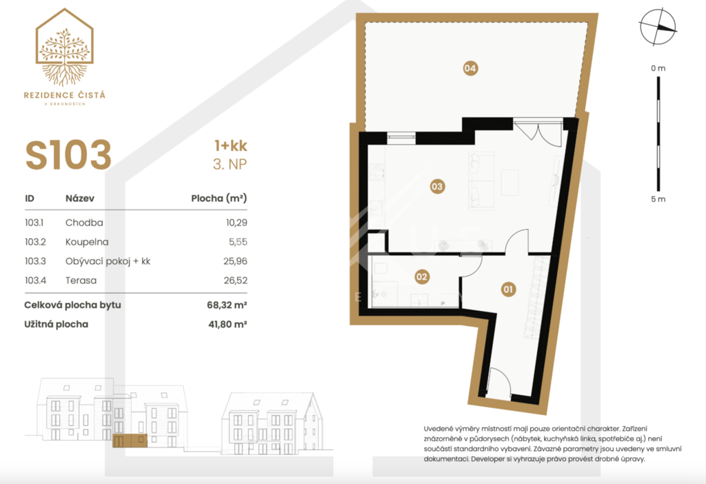Nabízíme k prodeji moderní byt o dispozici 1+kk v komorním developerském projektu Rezidence Čistá - Černý Důl, zasazeném do klidné horské krajiny Krkonoš. Projekt je ideální volbou pro vlastní rekreaci, celoroční bydlení i jako investice k pronájmu. Základní informace o bytě • Dispozice: 1+kk • Podlahová plocha: 41,80 m² • Podlaží: 3. NP • terasa: 26,52 m² • Stav: novostavba • Parkování: možnost dokoupení garážového stání Byt je navržen s důrazem na maximální využití prostoru, dostatek denního světla a příjemnou atmosféru horského bydlení. Díky kvalitnímu provedení a nadčasovému designu je vhodný jak pro vlastní užívání, tak pro krátkodobé či dlouhodobé pronájmy. Cenové rozpětí bytů 1+kk v projektu V rámci projektu jsou k dispozici také další byty o dispozici 1+kk v cenovém rozpětí přibližně od 5,3 mil. Kč do 8,1 mil. Kč včetně DPH, dle velikosti a umístění jednotky. Aktuální nabídku, půdorysy a detailní ceny naleznete na oficiálních webových stránkách projektu. Lokalita Rezidence se nachází v atraktivní lokalitě v blízkosti Černého Dolu, Janských Lázní a Mladých Buků, s výbornou dostupností lyžařských areálů, turistických tras i cyklostezek. Klidné prostředí a krásná příroda zajišťují vysoký komfort i dlouhodobou hodnotu nemovitosti. Investiční potenciál Omezený počet jednotek, horská lokalita a rostoucí poptávka po rekreačním bydlení dělají z tohoto bytu velmi zajímavou investiční příležitost. Pro více informací nebo domluvení prohlídky mě neváhejte kontaktovat.
