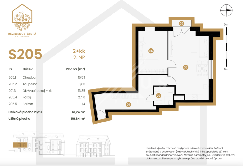 Nabízíme k prodeji moderní apartmán o dispozici 2+kk v komorním developerském projektu Rezidence Čistá - Černý Důl, umístěném v klidné horské lokalitě Krkonoš. Projekt je ideální volbou jak pro vlastní rekreaci, tak pro investiční využití s možností atraktivního pronájmu. Základní informace o apartmánu • Dispozice: 2+kk • Celková plocha: 61,24 m² • Podlaží: 2. NP • Balkon: ano 1,4 m² • Stav: novostavba • Parkování: možnost dokoupení garážového stání Apartmán nabízí praktické dispoziční řešení s oddělenou ložnicí, prostorným obývacím pokojem s kuchyňským koutem a dostatkem úložného prostoru. Velkorysé prosklení zajišťuje dostatek denního světla a příjemnou atmosféru horského bydlení. Cenové rozpětí apartmánů 2+kk v projektu V projektu jsou k dispozici také další apartmány o dispozici 2+kk v cenovém rozpětí přibližně od 7,5 mil. Kč do 9,5 mil. Kč včetně DPH, v závislosti na velikosti, orientaci a umístění jednotky. Aktuální nabídku, půdorysy a detailní ceny naleznete na oficiálních webových stránkách projektu. Lokalita Rezidence se nachází v atraktivní části Krkonoš, v blízkosti Černého Dolu, Janských Lázní a Mladých Buků, s výbornou dostupností lyžařských areálů, běžkařských tras, turistiky i cyklistiky. Lokalita zaručuje klid, soukromí a dlouhodobou hodnotu nemovitosti. Investiční potenciál Apartmány 2+kk patří mezi nejžádanější dispozice pro rekreační i krátkodobé pronájmy. Kombinace kvalitní novostavby, horské lokality a omezeného počtu jednotek představuje stabilní a perspektivní investici. Pro více informací nebo sjednání osobní prohlídky mě neváhejte kontaktovat.