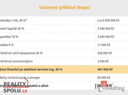Royal Apartments Aurum – poslední etapa v prodeji! Vstupte do světa klidu, komfortu a chytré investice v Černém Dole v Krkonoších. Do prodeje se nyní dostal díky své velikosti a orientaci jeden z nejžádanějších apartmánů v projektu. Apartmán je situovaný na jižní stranu s prostorným balkónem. Jedná se nyní o poslední etapu výstavby, více apartmánů zde již k prodeji nebude. I. a II. budova již plně funguje, najdete ji na Bookingu s hodnocením 4,8 hvězdičky. Nyní je v prodeji III. budova ve které bude restaurace, bazén a mnoho dalšího. Tento projekt je jedinečný svým konceptem. Pokud hledáte horský apartmán, kam byste mohli pravidelně jezdit a zároveň by Vám přinášel pasivní příjem, tak čtěte dál, tohle Vás nadchne. Nechceme Vám slibovat vzdušné zámky – počítáme pouze s 50% průměrnou obsazeností, a přesto vychází čistý měsíční výnos u tohoto apartmánu přes 50 000Kč po odečtení všech nákladů. Ale pasivním příjmem to opravdu nekončí. Majitelé mohou svůj apartmán včetně veškerého zázemí (wellness, bazén, fitness i zázemí pro děti) 6 týdnů v roce zdarma využívat. Pokud Vás tato myšlenka zaujala a chtěli byste slyšet veškeré informace a myšlenky, tak mi určitě zavolejte, domluvíme se na prohlídce a vše probereme. A nejlepší na závěr. Nyní se platí jen 10 % kupní ceny a doplatek až po kolaudaci, která bude koncem roku 2025 S financováním Vám samozřejmě rád pomohu.