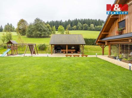 Nabízíme k prodeji luxusní srub z masivního dřeva v oblíbené lokalitě Dolní Moravy, část obce Dolní Orlice. Tento výjimečný srub se nachází v klidné části obce a nabízí ideální kombinaci investiční příležitosti s roční výnosností 600 000 Kč a komfortního rodinného bydlení. Tento nádherný srub z přírodních materiálů s moderními technologiemi je kolaudován v prosinci 2015. V přízemí najdete kuchyňský kout s jídelnou, společenskou místnost s krbovými kamny, koupelnu se sprchovým koutem a infrasaunou, lyžárnu a technickou místnost. V patře jsou čtyři pokoje, koupelna s vanou a samostatné WC. Tato nemovitost poskytuje nadstandartní ubytování pro 16 osob. Součástí prodeje je veškeré vybavení. Na pozemku o rozloze 2571 m² je zastřešená pergola s grilem a výhledem na dětské hřiště. Vytápění a ohřev vody jsou řešeny moderním tepelným čerpadlem země-voda, vlastní ČOV Aquatec AT 20. Parkoviště je přímo u objektu. Relaxujte v přírodě nedaleko přehrady Pastviny a Kralického Sněžníku!