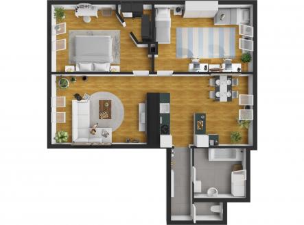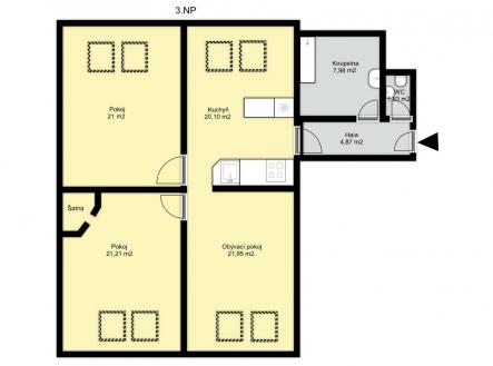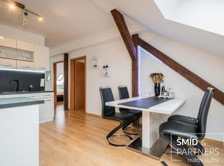 Dovoluji si Vám nabídnout ke koupi prostorný a neotřelý byt v osobním vlastnictví o dispozici 3+1 s celkovou podlahovou plochou 105m2 situovaný ve 3. podlaží menšího bytového domu s celkem 13 bytovými jednotkami v Červených Pečkách v ulici U Nádraží 131. Jako příslušenství k němu náleží velká oplocená zahrada, prostorný sklep, parkovací stání a na oploceném pozemku. Bytový dům je novostavbou kolaudovanou v roce 2021, disponuje nadstandardní podlahovou plochou, díky umístění v posledním - podkrovním podlaží a díky částečně přiznanému krovu získal jedinečnou a u bytů nezvyklou atmosféru. Dispozičně je rozdělen na vstupní chodbu, samostatné WC, prostornou koupelnu s vanou, umyvadlem, kuchyni s pohodlným jídelním koutem ve které je samozřejmě umístěna kuchyňská linka se zabudovanými spotřebiči - elektrickou a mikrovlnou troubou, myčkou, indukční deskou a digestoří. Dále pak na obývací pokoj, ložnici do které současní majitelé umístili vestavbu šatny a dětský pokoj ze kterého si majitelé vyčlenili část jako pracovní kout. S ohledem na dobu výstavby je byt vybaven současnými materiály. Vstupní chodba, WC a koupelna jsou kryty keramickou dlažbou, ostatní části bytu mají jednotnou plovoucí laminátovou podlahu s dřevěným dekorem, rovněž dveře a obložky jsou s dekorem dřeva. Ústřední vytápění je zajištěno elektrokotlem a ohřev teplé vody bojlerem. Měsíční náklad na elektřinu je aktuálně ve výši 3.700,-Kč, celkové provozní náklady bytu vč. elektřiny jsou 5.469,-Kč měsíčně. Velkým benefitem je zahrada, která k bytovému domu náleží. Pozemek o celkové výměře 2.891m2 a je oplocen po celém svém obvodu. K vjezdu na pozemek slouží 2 vjezdové brány, jedna s elektrickým pohonem a dálkovým ovládáním. Na pozemku jsou umístěna parkovací stání pro majitele. Vždy 1 parkovací stání tvoří příslušenství bytu, fakticky parkují na pozemku vždy 2 vozy. Na pozemku je umístěn zděný dům, který je rozdělen na 2 části, jedna slouží jako skládek na zahradní nábytek či nářadí a 2. část je majiteli bytů využívána pro letní posezení s rodinou a přáteli. Zahradu mohou využívat děti obyvatelů bytového domu na hraní, je možnost zde pěstovat rostliny a zahradničit. Bytový dům je po celkové rekonstrukci, 3.NP je zcela nově vystavěno - kolaudace objektu proběhla v roce 2021. Zdrojem pitné vody je vlastní studna na pozemku, odpad sveden do ČOV, která rovněž náleží k bytovému domu - obojí kolaudováno rovněž v roce 2021. Bytový dům je tak mimo elektřiny zcela nezávislý. Bezproblémové je i dopravní spojení - autobusová zastávka je přímo před domem, nedaleko od domu je i malá vlaková stanice. Železniční trať zde obsluhuje především osobní dopravu do Ledečka nad Sázavou nízkopodlažními vozidly. Červené Pečky jsou velmi vyhledávané městečko s kompletní občanskou vybaveností - je zde mateřská škola, základní škola, školní jídelna, pošta, obecní úřad, lékař, vyhledávané a oblíbené jsou i pro svou polohu a krátkou vzdálenost z Kolína - cca 6km a Kutné Hory - 8 km. Červené Pečky disponují i širokým sprotovním zázemím pro děti i dospělé. Pro další informace mne neváhejte kontaktovat.