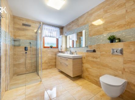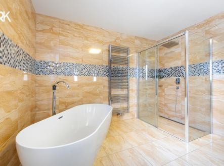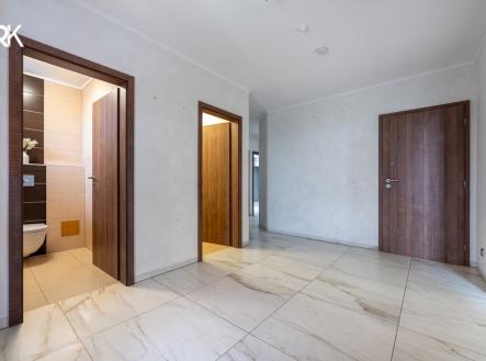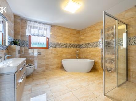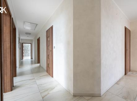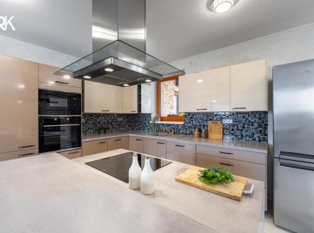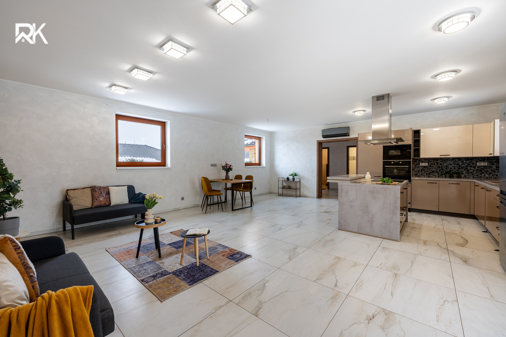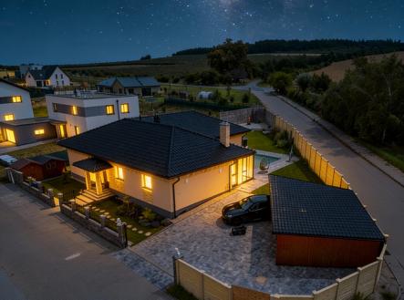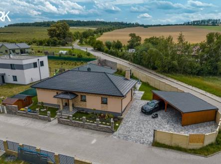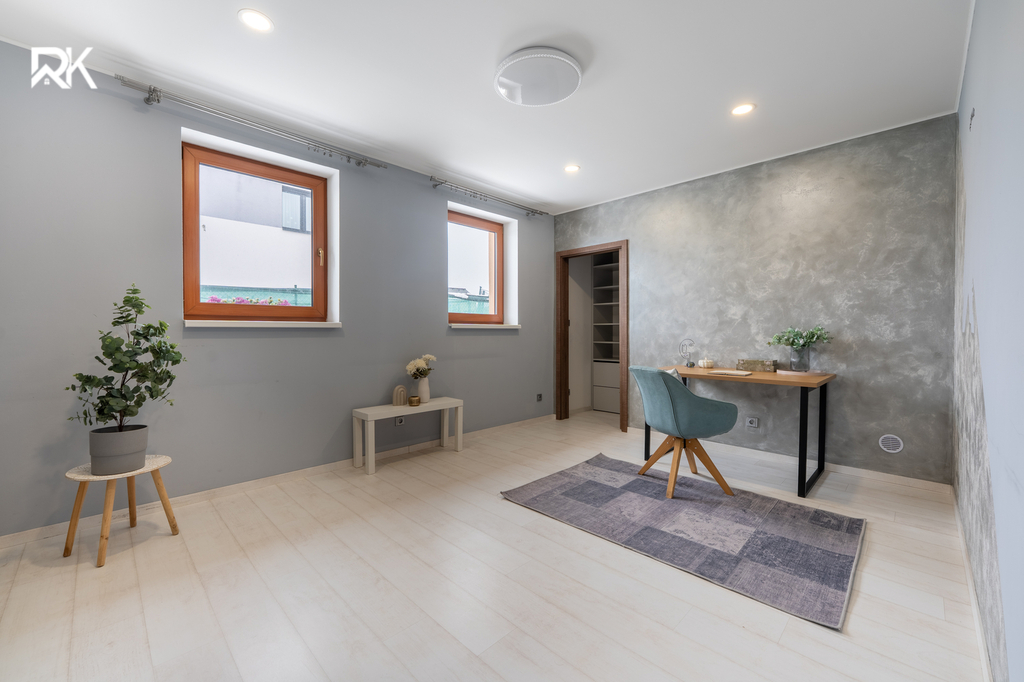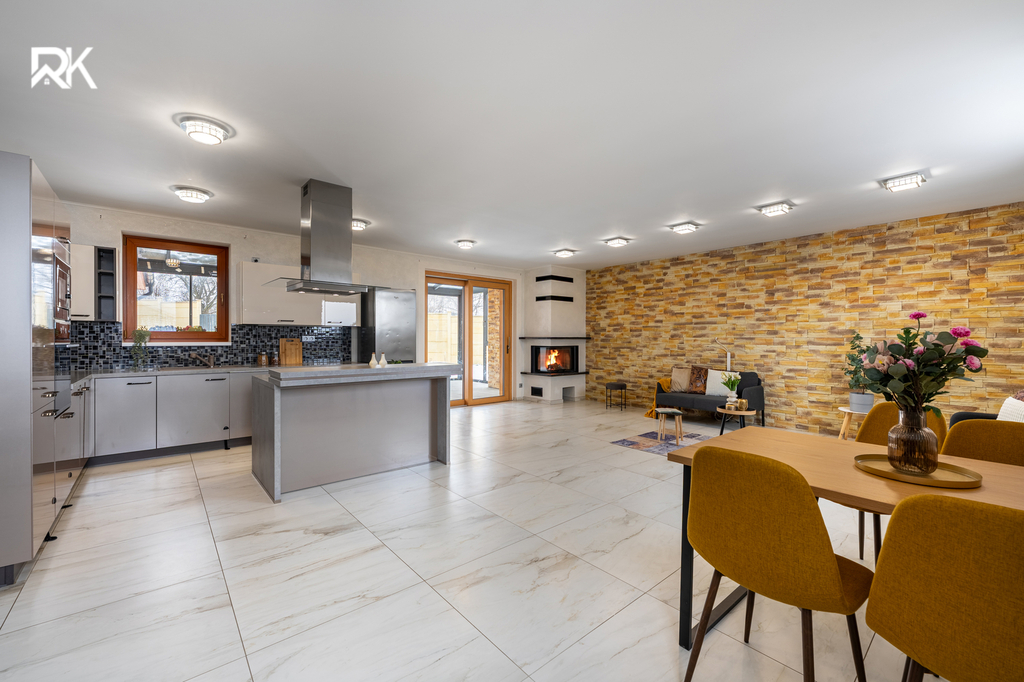 V Červených Pečkách, jen několik minut jízdy od Kolína, nabízíme k prodeji výjimečný moderní bungalov o užitné ploše 229 m² s celoroční zimní zahradou o velikosti 26 m², kolaudovaný v květnu 2022. Nemovitost se nachází v klidné části obce s kompletní občanskou vybaveností a zároveň nabízí naprosté soukromí. Dům je dispozičně řešen jako velkorysé 5+kk. Dominantou je prostorný obývací pokoj propojený s kuchyní a jídelnou, jehož atmosféru doplňují krbová kamna. Z obytného prostoru je přímý vstup do zimní zahrady, která je vytápěná i klimatizovaná a umožňuje plnohodnotné využití po celý rok. Soukromou část domu tvoří čtyři samostatné ložnice, přičemž každá disponuje vlastní šatnou. K dispozici jsou dvě koupelny, tři samostatné toalety, praktická spíž u kuchyně a další samostatná šatna u vstupu do domu. Další úložný prostor nabízí skladovací místnost v podkroví o velikosti cca 35 m². Stavba byla realizována z kvalitních materiálů s důrazem na energetickou úspornost a dlouhou životnost. Použito bylo zdivo Heluz Family, fasáda je zateplena 20 cm izolace, strop disponuje 50 cm minerální vaty. Osazena jsou sedmikomorová okna s trojskly a dům je zastřešen pálenou glazovanou taškou. V interiéru byly použity luxusní italské dlažby a kvalitní vinylové podlahy. Samozřejmostí jsou bezpečnostní rolety s motory Somfy ve všech oknech. Komfort bydlení zajišťuje kompletní podlahové vytápění napojené na kondenzační plynový kotel v kombinaci s tepelným čerpadlem. Každá místnost je vybavena klimatizací. Nemovitost disponuje kamerovým a zabezpečovacím systémem včetně videozvonku. Exteriér domu je navržen s důrazem na pohodlí i reprezentativní využití. K dispozici je kryté parkování pro tři vozy, elektrická vjezdová brána a 400V zásuvka vhodná například pro wallbox či dílenské využití. Na zahradě se nachází nadstandardní bazén s protiproudem, vyhřívaný samostatným tepelným čerpadlem. Zahrada je kompletně zatravněná, vybavena automatickou závlahou a retenční nádrží na dešťovou vodu. Připravena je také infrastruktura pro venkovní kuchyni včetně přívodu vody, odpadu a WC. Součástí jsou dvě zahradní kůlny pro technické zázemí. Červené Pečky nabízejí plnou občanskou vybavenost – mateřskou i základní školu, zdravotní středisko, lékárnu, poštu, obchody, restaurace, sportoviště i vlakové spojení. Díky blízkosti Kolína nebo Kutné Hory je zajištěna široká nabídka pracovních příležitostí i kompletní infrastruktura většího města, přičemž Praha je dostupná přibližně do 45 minut. Nemovitost lze financovat hypotečním úvěrem, který Vám rádi vyřídíme, pros více informací kontaktujte makléře.