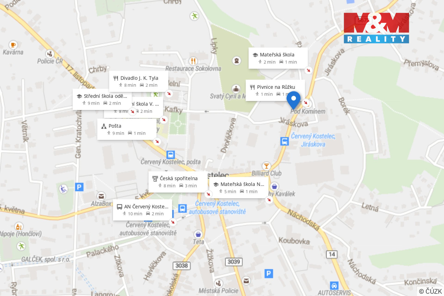 Nabízíme k prodeji prostorný byt 3+1 o užitné ploše 93 m², nacházející se v centru obce Červený Kostelec. Tento byt, umístěný v prvním nadzemním podlaží cihlového domu, prošel rozsáhlou renovací. Vytápění je zajištěno kombinovaným plynovým kotlem, klimatizací a krbovými kamny, což zaručuje komfortní bydlení v každém ročním období. Byt je součástí objektu se čtyřmi bytovými jednotkami a nabízí přístup ke společné půdě, sklepním prostorám a zadnímu společnému prostoru s kůlnou. S celkovým počtem čtyř místností poskytuje dostatek prostoru pro rodinné bydlení. Tato nemovitost je ideální volbou pro ty, kteří hledají komfortní a klidné bydlení v srdci Červeného Kostelce. Nepropásněte tuto jedinečnou příležitost a domluvte si prohlídku ještě dnes!