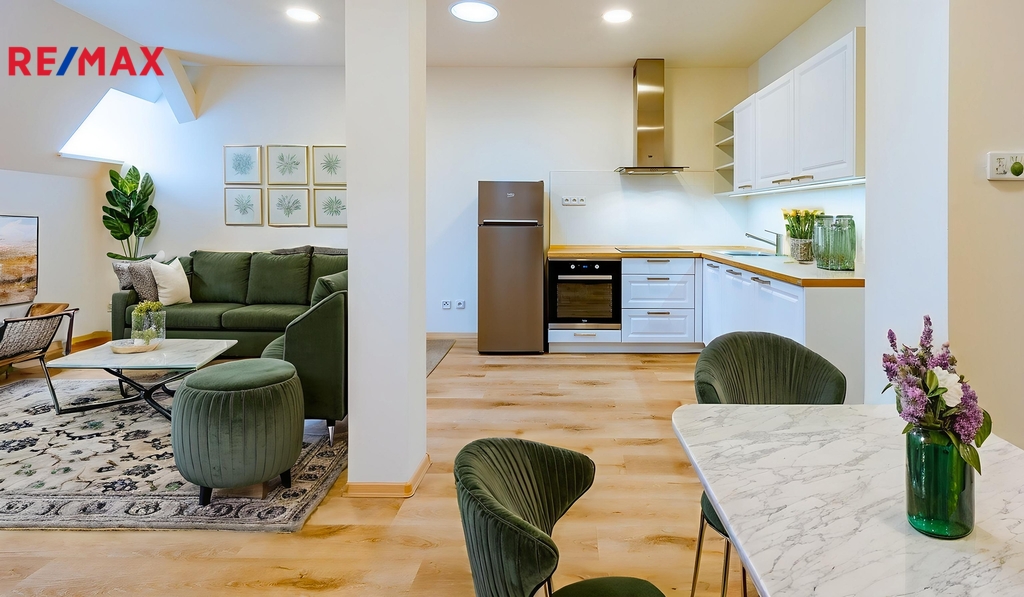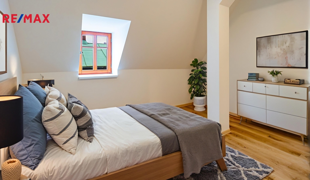Chcete bydlet opravdu v centru dění? Tohle není jen další obyčejný byt v České Lípě... Nadstandardní bydlení přímo v centru města na náměstí nebo zajímavá investiční příležitost s možným ročním výnosem z nájemného více než 200 tis. Kč. Nabízíme k prodeji zánovní, nadstandardní podkrovní byt o dispozici 2+1 v nedávno zrekonstruovaném domě s okny a výhledem na náměstí T. G. Masaryka a vchodem ze Škroupova náměstí v České Lípě, které právě získává svou novou, moderní tvář. Vzniká zde místo, kde se bude již zanedlouho žít mnohem příjemněji... Byt o velikosti 75 m2 se nachází ve 3.NP bytového domu a je situován v podkroví, přičemž okna bytu nabízejí výhledy na náměstí T. G. Masaryka. Dispoziční řešení bytu je patrné z přiloženého půdorysného schématu a bytem se můžete projít prostřednictvím virtuální prohlídky. Byt je zařízen moderní kuchyňskou linkou včetně spotřebičů a disponuje prostornou vstupní chodbou, koupelnou, samostatnou toaletou, obývacím pokojem s kuchyní a ložnicí. Vytápění vlastním plynovým kotlem umístěným v koupelně s možností komfortního automatického ovládání. V koupelně i na toaletě jsou použity kvalitní obklady a dlažby stejně jako zařizovací předměty. Celý byt využívá komfortu podlahového vytápění. Na podlahách obytných místností je plovoucí podlaha. Do prostoru kuchyně byla instalována na míru vyráběná rohová kuchyňská linka v bílé barvě s nerezovými úchytnými lištami v kombinaci s dubovou pracovní deskou, vybavená spotřebiči - pečící el. trouba, indukční varná deska, lednice s mrazničkou, myčka nádobí, digestoř. Dům má pouze 4 bytové jednotky a 2 nebytové prostory v přízemí, nabízený byt je ve 3.NP, samozřejmostí je vlastní měření plynu, elektřiny i vody. Dům, ve kterém se byt nachází, prošel z větší části rekonstrukcí. Žádný anonymní panelák, ale komorní, klidné bydlení. Pokud hledáte nadstandardní bydlení na výjimečném místě v samém centru České Lípy nebo hledáte zajímavou investiční příležitost, pak nás kontaktujte prostřednictvím odpovědního formuláře a my se Vám ozveme pro domluvení prohlídky. Budeme se těšit na setkání s Vámi. Pro lepší představu potenciálu bytu jsou v inzerátu použity vizualizace jako inspirace možného řešení po rekonstrukci a dovybavení.