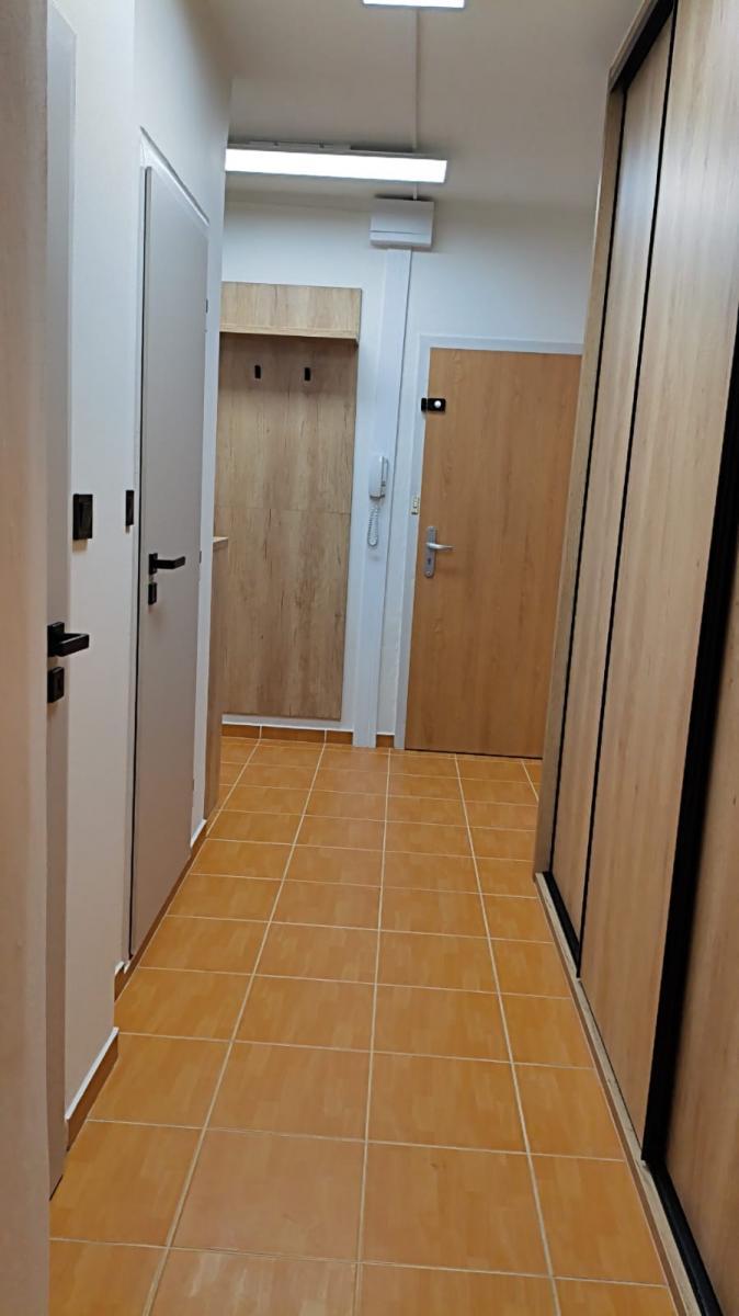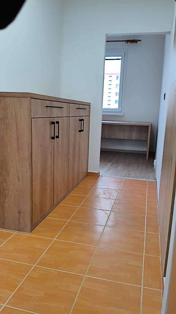 Byt 2+1 o celkové obytné ploše 57m2 se nachází v 6. NP revitalizovaného panelového domu s výtahem. Podlahy vinyl a dlažba. Zděná koupelna s vanou vč. zástěny s umyvadlem a podumyvadlovou skříňkou. Oddělené WC. Vytápění a ohřev vody dálkově s vlastními měřidly. Kuchyňská linka s plynovou varnou deskou, elektrickou troubou, vestavnou mikrovlnnou troubo a myčkou. Vestavná skříň v předsíni, šatní stěna a komoda. Možnost napojení internetu. V místě je výborná občanská vybavenost a dostupnost MHD, obchodů a služeb. Nájem: 13.000,- Kč/měs Záloha na služby: 4.500,- Kč/měs + vlastní spotřeba elektřiny a plynu 1.500,- Kč/měs (převod na nájemce) Kauce 2 měsíční nájmy: 26.000,- Kč (úhrada při podpisu smlouvy, také možné rozdělit do 2 splátek) Odměna RK: 13.000,- Kč (hradí nájemce při podpisu smlouvy)