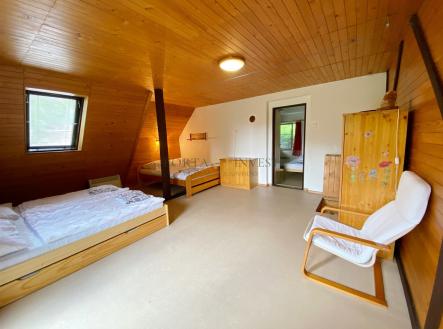 Nabízíme k prodeji malebnou stylovou chalupu (98 m2 podlahové plochy) s pozemkem (558 m2) v České Metuji, části obce Vlásenka, okr. Náchod, v CHKO Broumovsko. Nemovitost se nachází uprostřed zeleně, na klidném místě (polosamota) s příjemnou jihovýchodní orientací. Dispozici přízemí tvoří vstupní chodba, centrální stylová obytná místnost s malou, ale vybavenou kuchyňkou, samostatná toaleta a koupelna se sprchovým koutem. V obytném podkroví se nachází další dvě místnosti užívané jako ložnice, s lůžky až pro osm osob. Větší z ložnic má navíc k dispozici příjemnou dřevěnou lodžii. Vytápění objektu zajišťují kamna na dřevo, v patře elektrické přímotopy. Podlahy pokrývá dlažba a PVC, ve vstupní chodbě beton. Kanalizace je řešena jímkou, ohřev vody (veřejný vodovod) zajišťuje bojler. Nemovitost má internetové připojení. Na udržovaném neoploceném pozemku se dále nachází zahradní altán, ohniště, kůlna na nářadí a dřevo a parkovací stání pod krytou pergolou. Nemovitost je vhodná jak pro celoroční využívání, tak i na investici pro ubytování v turisticky atraktivním regionu v sousedství AdršpašskoTeplických skal. Financování lze zajistit rovněž hypotékou, kterou vám můžeme pomoct zprostředkovat. Doporučujeme návštěvu!