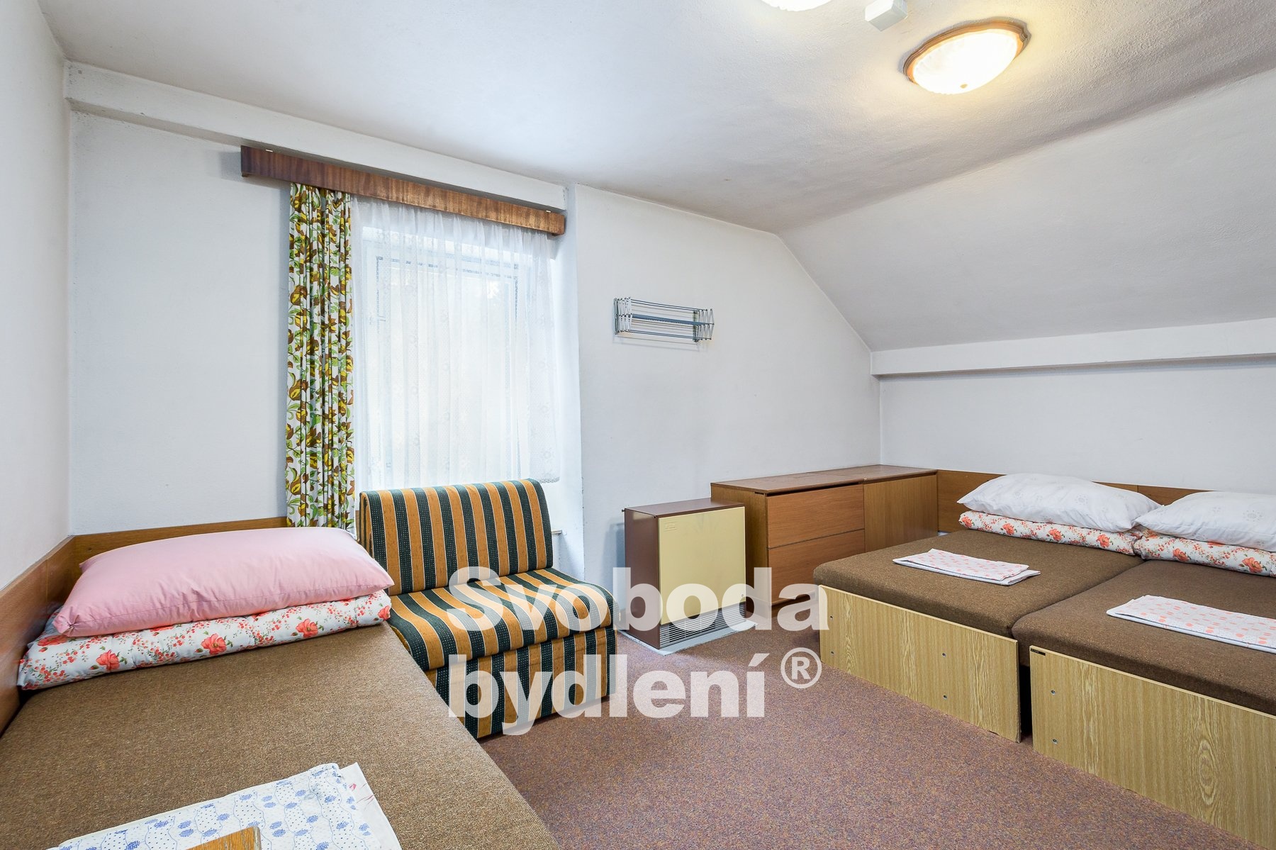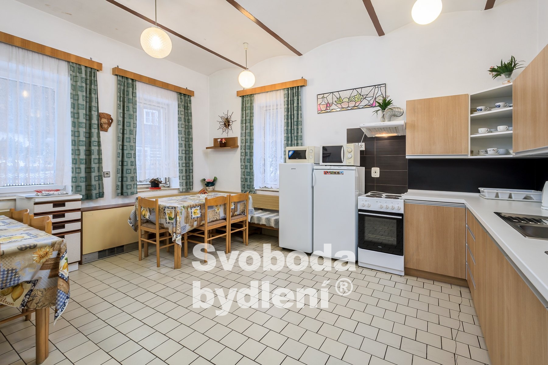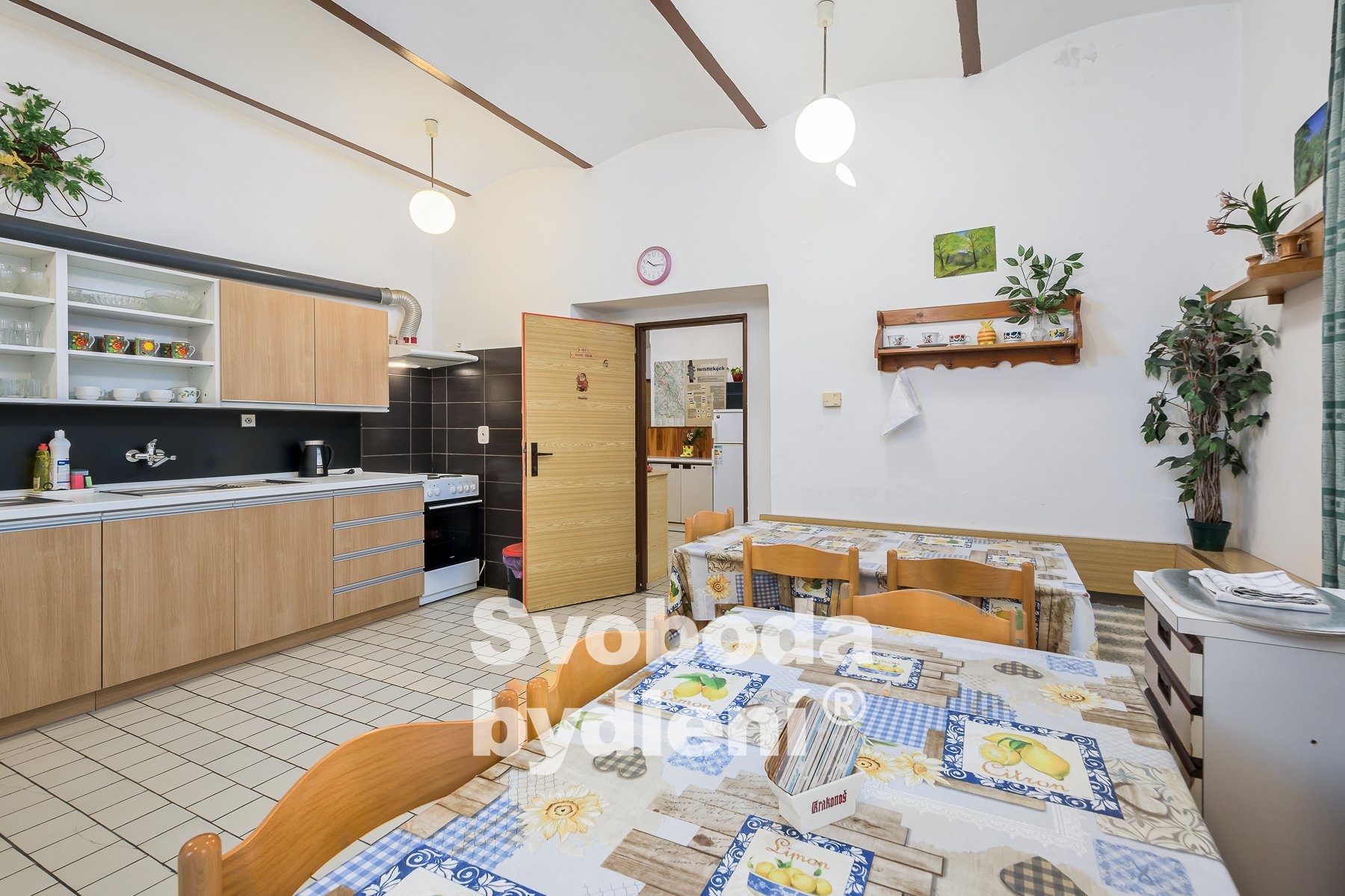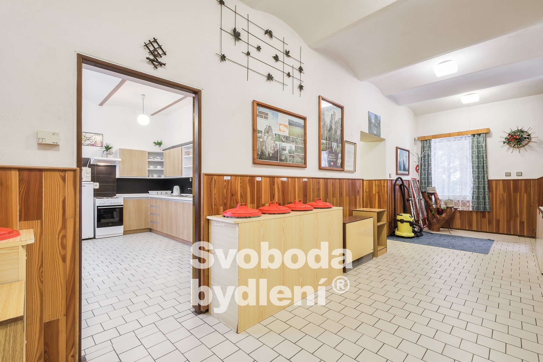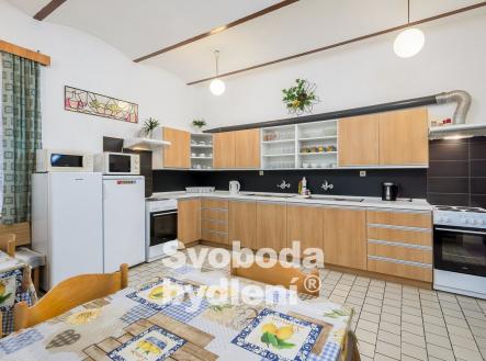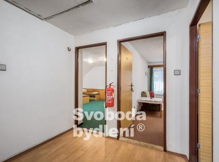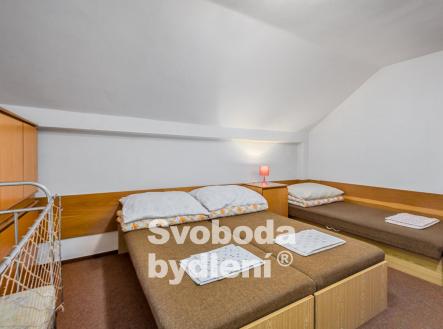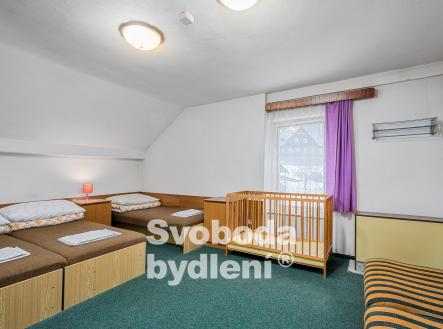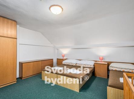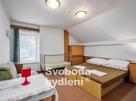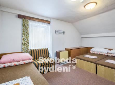 Doporučujeme mimořádnou nabídku prodeje domu se souhrnem pozemků v jedinečné lokalitě přírody Broumovska. Stavba je nyní kolaudována jako výchovně vzdělávací středisko a je dále využívána pro rekreaci a ubytovací služby. Obklopující pozemky za domem nabízí dostatek prostoru pro relaxaci a aktivní odpočinek, posezení u protékajícího potoka Vlásenka i možnost sportovních her. Stavba domu sestává ze dvou podlaží a obytného podkroví, navzájem propojených vnitřním schodištěm. V 1. PP, které je přístupné také z pozemků za domem, se nachází seminární místnost (cca 28 m2), 4 skladové prostory, dílna, společné hygienické zařízení včetně sprch, prostor pro saunu, technická místnost s bojlery. V 1. NP s hlavním vstupem do domu od příjezdové komunikace se nachází velká společenská místnost (cca 40 m2) a herna (cca 17 m2), kuchyně s jídelnou (cca 22 m2) a společné hygienické zázemí včetně sprch. V podkroví je 7 pokojů (v rozsahu 25 lůžek včetně přistýlek, o velikostech cca 21, 18, 17, 15, 14, 13 a 10 m2), společné hygienické zázemí a sklad. Cihlový dům byl v roce 1991 rekonstruován a kolaudován do současné podoby, nadále je průběžně pečlivě udržován. V rámci rekonstrukce bylo provedeno např. nové bednění krovu, střešní krytina (eternit), vestavba pokojů s hygienickým zařízením, nová el. instalace, výměna oken a dveří, nová fasáda. Rozsáhlým pozemkům za domem dodává ojedinělost protékající potok Vlásenka a malá skála (cca 3 metry), vzrostlá zeleň skýtá množství přírodních zákoutí a dostatek soukromí. Za potokem je malé hřiště a ohniště pro grilování. V další části pozemků je možnost parkování cca 8 vozů. Dům má přípojky k obecnímu vodovodu, samostatnou přípojku elektřiny, je vybudována vlastní ČOV. Vytápění objektu je řešeno elektrickými akumulačními kamny, ohřev vody zajišťují elektrické boilery. Celková roční spotřeba elektřiny byla cca 59tis. kWh. Energetická třída G (bude upřesněno). Nemovitost se nachází ve 2. povodňové zóně, tj. zóna s nízkým nebezpečím výskytu povodně/záplavy, a II.-IV. zóně CHKO a pam. zóně. Nemovitost se nabízí včetně zařízení, viz fotografie. Vlastník si vyhrazuje právo výběru lepší nabídky. Celková výměra pozemků je 2.748 m2 včetně zastavěné plochy cca 186 m2. Podlaží disponují celkem cca 493 m2 (1. PP cca 118 m2, 1. NP cca 188 m2, podkroví cca 188 m2) plus půda. Místnosti mají plochu v 1. PP cca 116 m2, v 1. NP cca 135 m2 a v podkroví cca 135 m2, tj. celkem cca 386 m2. V blízkém okolí nalezneme množství přírodních a kulturních památek i bezpočet sportovních aktivit. CHKO Broumovsko je známo pro svou malebnou krajinu plnou kontrastů, osobitou architekturu, barokní kostely, pískovcová skalní města. Za návštěvu stojí např. nádherné přírodní lokality jako jsou Adršpašské a Teplické Skály, Ostaš, Jestřebí hory, Žaltman. Místo je ideální pro pěší turistiku, cykloturistiku či běžky, horolezectví, autem jsou v dosahu lyžařské vleky či koupaliště v Polici nad Metují.