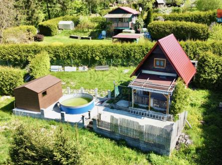 Nabízíme vám ke koupi útulnou chatu ve velmi klidné části obce Česká Třebová. Chata disponuje hlavní obytnou místností, podkrovní ložnicí a je z větší části podsklepená. V chatě se jsou krbová kamna, ale po výměně střešní krytiny nedošlo k obnovení komínu skrz krytinu. Voda je zde z veřejného vodovodu a elektrický proud je také zaveden. Před chatou se nachází zastřešená pergola, plechová garáž a bazén. Pokud máte rádi soukromí, které tato velká zahrada nabízí, je tato nabídka určena přímo pro vás. Ideální pro milovníky přírody a klidu. Celková plocha pozemku činí 1549 m², což poskytuje dostatek prostoru pro zahradničení či relaxaci. Užitná plocha chaty je 25 m² a je ve velmi dobrém stavu, připravena k okamžitému využívání. Nepropásněte tuto jedinečnou příležitost k získání této nemovitosti. Pro více informací a domluvení prohlídky neváhejte kontaktovat makléře.