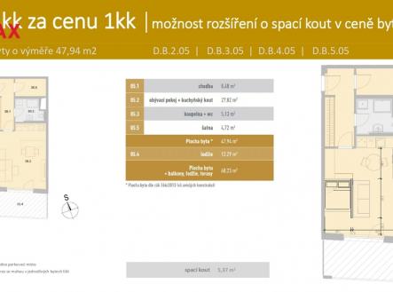 2kk za cenu 1kk, moderní byt s možností spacího koutu, 47,9 m² + lodžie a sklep
