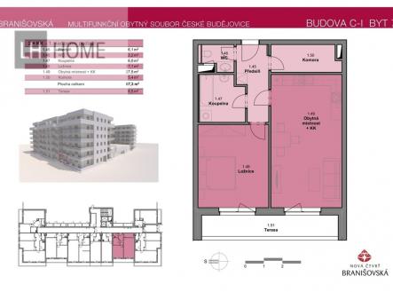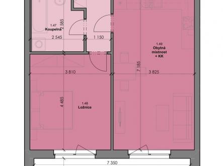 Bytová jednotka 2+kk (67,30 m²) s balkonem (8,50 m²)