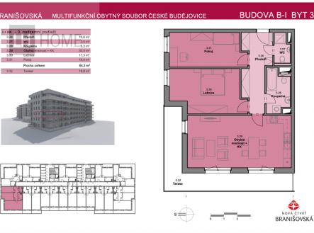 Druhá etapa projektu Nová čtvrť Branišovská B-I-II-III právě v prodeji! Představujeme vám jedinečnou příležitost bydlení, která kombinuje atraktivní lokalitu, moderní design a komfortní vybavení! Tento stylový byt 3+kk (84,3 m2) s terasou (19,9 m²) čeká na svého nového majitele ve 3. patře novostavby bytového domu B-I. Byt je navržen s důrazem na moderní styl a maximální funkčnost – perfektní volba pro jednotlivce, mladé páry nebo jako investiční příležitost. Součástí ceny je kvalitní standardní vybavení, které splní očekávání i náročnějšího zákazníka. Komfort, styl a dostupnost na jednom místě. Projekt nabízí celkem 225 bezbariérových bytů různých dispozic (od 1+kk po 4+kk). Všechny byty se pyšní balkónem, lodžií nebo terasou. K dispozici je i možnost zakoupení garážového parkovacího stání (od 390 000 Kč) nebo sklepa, který vám poskytne úložný prostor navíc. Harmonogram kolaudace a flexibilní financování: Kolaudace bytového domu je plánována na 4. čtvrtletí roku 2028. A co víc – nabízíme možnost družstevního bydlení, což je skvělá volba pro ty, kteří hledají flexibilní financování a snadnější cestu k vlastnímu bydlení. Neváhejte a kontaktujte nás ještě dnes! Rádi vám poskytneme více informací, poradíme s financováním nebo domluvíme osobní prohlídku. Nová čtvrť Branišovská – to je místo, kde se sny o bydlení stávají skutečností!