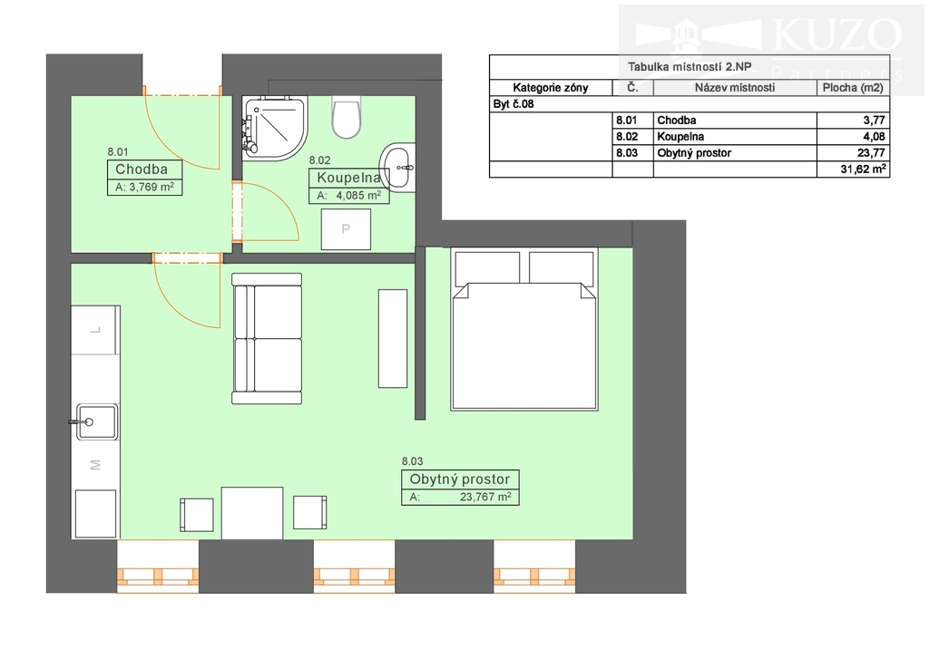 Nové byty (32–56 m²) v 1. patře cihlové rezidence! Prodej bytů v novém komorním projektu. Nabízíme vám jedinečnou příležitost vybrat si z nových bytů umístěných v 1. patře a zajistit si tak investici s vysokým potenciálem zhodnocení ještě před dokončením stavby. Výstavba je v plném proudu a předpokládaný termín dokončení je stanoven na konec roku 2025 (v případě, že nenastanou nepředvídatelné komplikace). Pro koho jsou byty ideální? Pro investory: Menší byt (32 m²) je ideální pro uložení financí s následným pronájmem. Pro páry i jednotlivce: Větší byty (48 a 56 m²) nabízejí dostatek prostoru pro komfortní život, stále však s nízkými provozními náklady novostavby. Startovací bydlení: Skvělá příležitost pořídit si první vlastní nemovitost v kvalitním cihlovém domě. Aktuální nabídka volných bytů v 1. patře: Buďte první, kdo si vybere dispozici, která nejlépe odpovídá vašim představám: Byt č. 8 – výměra 32 m² – cena 3.200.000 Kč Byt č. 5 – výměra 48 m² – cena 4.656.000 Kč Byt č. 6 – výměra 56 m² – cena 5.432.000 Kč (výměra obsahuje terasu 14m2) Všechny ceny jsou konečné a zahrnují kompletní právní servis i provizi RK. Platební podmínky: 30 % ceny splatných po rezervaci, 70 % po podpisu Kupní smlouvy (lze individuálně domluvit podmínky). Klíčové parametry projektu: Konstrukce: Poctivý cihlový dům zaručující skvělé tepelně-izolační vlastnosti a dlouhou životnost. PENB: Energetická náročnost budovy: Třída C – Úsporná. Parkování: Možnost dokoupení parkovacího stání na soukromém parkovišti u domu (celkem 5 míst). Cena 320.000 Kč za místo (platí do vyprodání volných míst). Lokalita, která má vše: Byty se nachází ve strategicky výhodné lokalitě, která kombinuje klid s perfektní dostupností. Centrum obce: Pouhých 500 metrů, tedy pár minut chůze. Dopravní dostupnost: Vlakové nádraží vzdálené jen 400 metrů. Proč investovat právě teď? Koupě nemovitosti ve fázi výstavby s sebou přináší nejlepší výběr a jistotu zhodnocení investice ihned po kolaudaci. Buďte o krok napřed. Získejte kompletní informace: Zaujala Vás tato nabídka? Pro bližší informace, detailní podklady k jednotlivým bytům a domluvení osobní schůzky neváhejte kontaktovat naši realitní kancelář. Domluvte si schůzku a vyberte si ten nejlepší byt pro své plány! ________________________________________ Upozornění: Fotografie označené hvězdičkou (*) v pravém dolním rohu jsou vizualizovány pomocí umělé inteligence a slouží pouze pro ilustraci možného budoucího stavu.