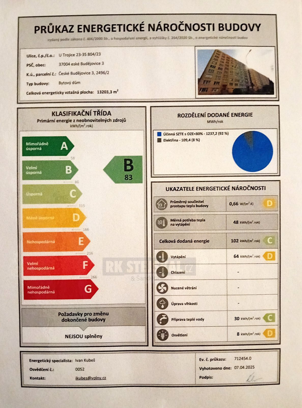 Pěkný moderní byt 2+1 s podlahovou plochou 63m², s výhledem na řeku Vltavu. Byt je v 6. patře revitalizovaného panelového domu (PENB B) v žádané loklaitě Pražské sídliště, v ulici U Trojice, s přímou návazností na cyklostezku i na MHD do centra. Byt má balkon, komoru (úložné prostory) a sklepní kóji v přízemí. Dispozice a stav bytu Byt prošel kompletní rekonstrukcí v roce 2018, která zahrnovala zejména: • nové zděné bytové jádro • modernizovanou koupelnu s vanou a prostorem pro pračku + sušičku • kuchyňskou linku na míru včetně spotřebičů • nové podlahové krytiny a koberce • výměnu elektroinstalace v jádře • instalaci bezpečnostních vstupních dveří • sítě proti hmyzu Byt je ve velmi dobrém stavu, bez nutnosti aktuálních investic. Stav domu Dům je po revitalizaci: • zateplení obvodového pláště • plastová okna • nový výtah • energetická náročnost PENB B K dispozici jsou společné prostory – kočárkárna, sušárna. Parkování je možné před domem v rezidenční zóně G. Lokalita Vyhledávaná a klidná lokalita s výhledem na řeku Vltavu a přímým napojením na cyklostezku. V blízkosti se nachází mateřská a základní škola, zastávka MHD, obchody, restaurace, sportoviště a další občanská vybavenost. Souhrnně: Byt je vhodný jak k vlastnímu bydlení, tak jako investiční příležitost bez nutnosti dalších úprav. Nájmy podobných bytů v místě se pohybují okolo 14.000-16.000,-Kč/měs. Doporučuji osobní prohlídku. Případné kvalitní financování je možné pohotově zajistit.