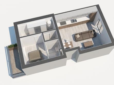 Moderní byt 2+kk s balkonem, parkovacím stáním a zahradou, lokalita České Budějovice, K. Lávičky