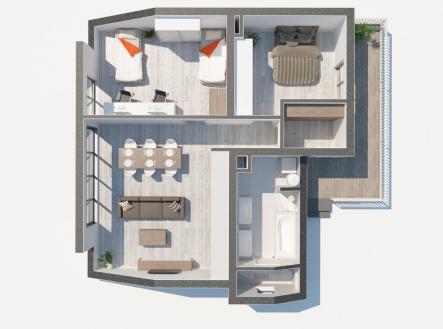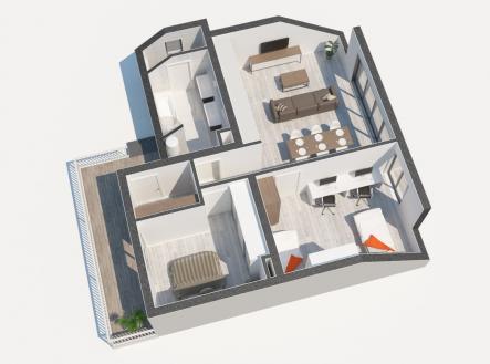Moderní byt 3+kk s balkonem (4NP), parkovací stání a zahrada, lokalita České Budějovice, K. Lávičky
