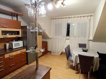 Nabízíme k prodeji podkrovní byt 3+kk, zděný dům ve skvělé lokalitě centra Českých Budějovic. Bytový dům se nachází na rohu ulice Skuherského a Kostelní. Bytová jednotka má celkem cca 93,5 m2. Současná dispozice bytu je kuchyň 20,45 m2, pokoj 26,37 m2 nyní využívaný jako obývací pokoj, ložnice 14,33 m2, koupelna 3,61 m2, samostatné WC 1,31 m2, místnost 7,42 m2 nyní využívaná jako šatna, komora 2,98 m2 + cca 2 m2 vyvýšených a v šikmině (tato plocha není započítaná v celkové ploše bytu), předsíň s chodbou 9 m2 sklep cca 8 m2. Možnost spojit šatnu s komorou a tím by vznikl další pokoj (nutno přidat okno, topení pomocí radiátoru již připraveno) nebo další možnost zmenšit šatnu a vytvořit v místě terasu. Byt je zateplený s plastovými okny, rozvody na topení jsou v mědi, elektřina také v mědi, vytápění pomocí plynového kotle (možno přidat krb nebo kamna do obývacího pokoje, kde je už hotová příprava pro připojení). V kuchyni jsou na oknech vnitřní žaluzie, v ostatních místnostech jsou venkovní rolety, skvělé jak na zatemnění při spánku tak v letních měsících jako ochrana proti přehřívání. Další výhodou je společná oplocená zahrada ve vnitrobloku. V domě je instalovaný kamerový systém. O úklid společných prostor, sečení zahrady atd. se stará správce budovy. V domě prozatím není výtah. V docházkové vzdálenosti veškerá občanská vybavenost s dobrou dostupností centra města. Parkování zajištěno - modré parkovací zóny. Byt je vhodný i jako investice. Možnost financování hypotečním úvěrem - možnost výhodně zajistit.
