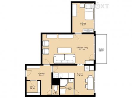 Prodej byt 2+1, 59㎡