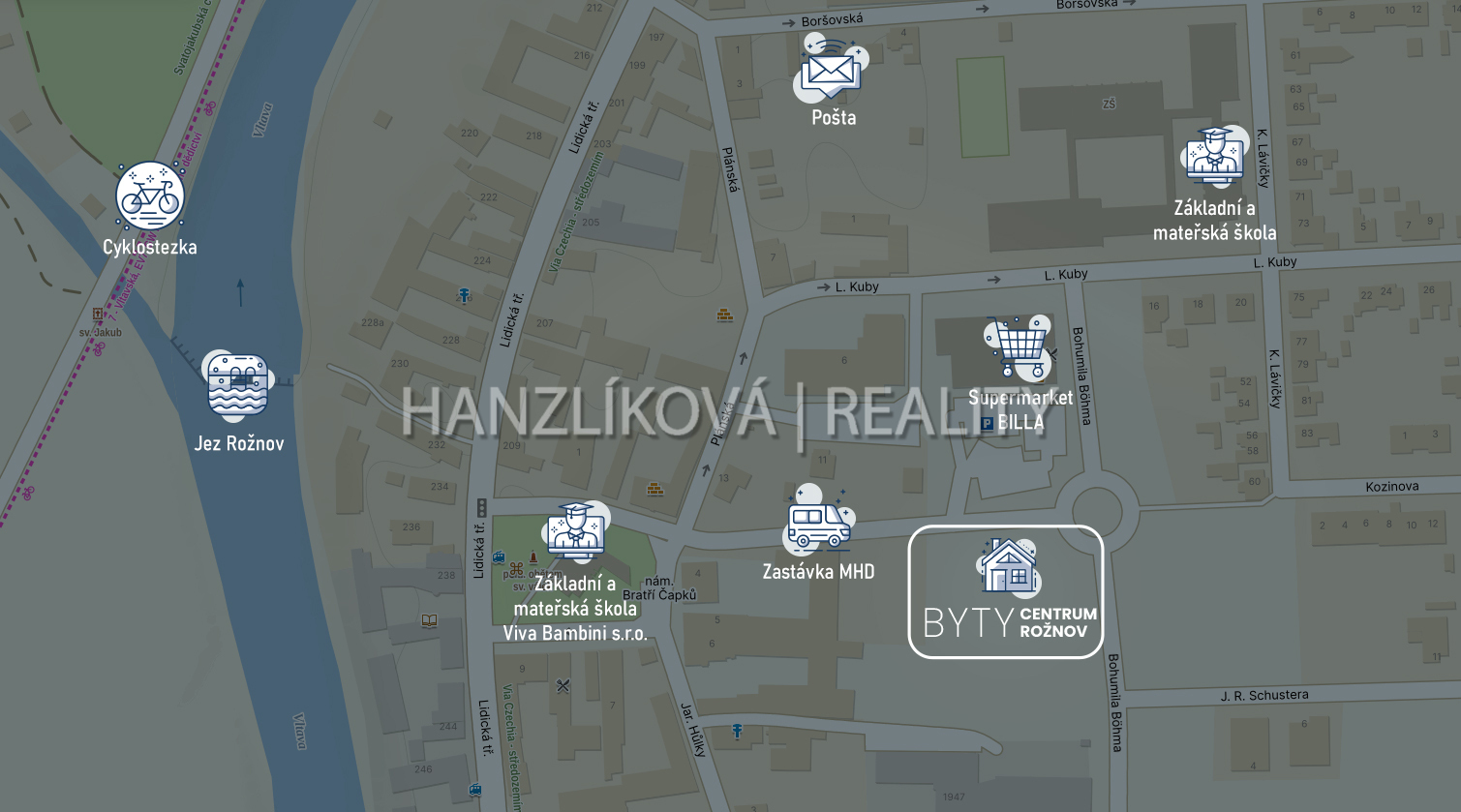 Bytový dům „BYTY CENTRUM ROŽNOV“ se nachází v jedné z nejžádanějších lokalit Českých Budějovic, v městské části Rožnov. Projekt je strategicky umístěn v klidné části města, vzdálené jen pár minut jízdy autem do centra a několik kroků od zastávky MHD. Bohatá občanská vybavenost ( mateřská a základní škola, dětský lékař, praktický lékař, veterinární klinika, obchod BILLA, několik restaurací, pošta) se rovněž nacházejí v těsné blízkosti. V Rožnově najdete několik dětských hřišť a cyklostezku, která vede až do centra města. Ve dvou budovách (A,B) se bude nacházet celkem 20 bytových jednotek o dispozicích 3+kk, 4+kk až po střešní penthausy o dispozicích 6+kk. Velikosti bytů jsou od 93 až do 152 m2 včetně terasy. Každý byt má prostornou terasu, součástí bytu je vysoký standard, kvalitní použité materiály, v ceně bytu je sklep. Objekt je vybaven výtahem. Samozřejmostí je vyhrazené, zastřešené parkovací stání přímo v komplexu. Vytápění domu je zajištěno plynovým kondenzačním kotlem – aktuálně nejvýhodnější varianta. Klienti mají možnost individuálního výběru zařizovacích předmětů a dalších úprav, jako jsou obklady, dlažba, podlahy, dveře, což umožňuje přizpůsobit byt dle svých preferencí a potřeb. A to ve spolupráci se SENESI a INTERIER SERVIS CB. Bytová jednotka označená číslem 2A je byt o dispozičním řešení 3+kk a celkové ploše 104 m2 nacházející se ve 2. NP bytového domu A - Vltava. Byt je orientovaný na západ, má prostornou terasu, která se rozprostírá po celé délce bytu a je přístupná ze všech obytných místností. Byt o výměře 103,87 m2 se skládá z těchto místností : - prostorné chodby, která má dostatek místa pro vestavné skříně a úložné prostory, koupelny s vanou, sprchovým koutem, toaletou, místem na pračku a oknem, samostatné toalety, hlavní obytné části s kuchyňským koutem a jídelnou, dětského pokoje a ložnice. Součástí bytu je balkon o výměře 22,57 m2 a sklepní kóje umístěná v suterénu domu. K bytu je možné přikoupit kryté parkovací stání za částku 450 tis Kč nebo nekryté za částku 350 tis Kč. Půdorys bytové jednotky naleznete v přiloženém souboru PDF. Zajistíme Vám veškeré možnosti financování - přes prodej stávající bytové jednotky až po vyřízení hypotéčního úvěru. Projekt je financován a zajištěn prostřednictvím ČSOB.