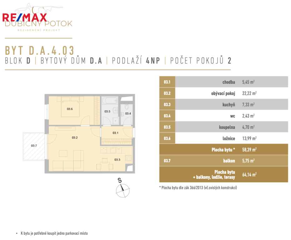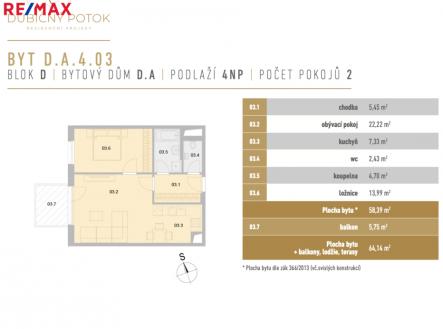 V ceně bytu od nás nyní získáte dárek v podobě vybavení od HANÁK NÁBYTEK v hodnotě 480 000 Kč ZDARMA. Přijďte se podívat do našeho vzorového bytu a zjistěte, co všechno jsme za tuto hodnotu dokázali zařídit! Tato nabídka je časově omezená a nevztahuje se na byty 1+kk. Kompletní nabídku bytů za akční ceny i další bonusy při rychlém jednání až do výše 150 000 Kč najdete na našem webu. Nabízíme ke koupi prakticky řešenou dispozici 2+kk D.A.4.03 v projektu Dubićný potok. Prostorný byt s výměrou 58,39 m² disponuje balkónem o výměře 5,75 m². Nachází ve 4. nadzemním podlaží. V projektu je k dispozici pohodlné parkování v podzemní garáži a zastávka MHD přímo před domem. V přízemí rezidence brzy je od ledna 2026 v provozu dětská skupina a brzy se otevřou i další nové jednotky např. tetovací studio, kadeřnictví, kosmetika, kavárna, Pilates reformer studio a další služby. Nová rezidence Dubičný Potok nabízí moderní a klidné bydlení v zeleni s atriem, revitalizovanou vodní plochou, naučnou stezkou, přírodním hřištěm, workoutovým prostorem, komunitním grilem, interiérovou rezidenční fitness zónou 24/7 a dalšími prvky pro relaxaci. Veřejné prostranství je navrženo udržitelně – zelené střechy spolu s atriem pomáhají optimalizovat mikroklima budov. Součástí projektu je také cyklostezka, kolárna a myčka kol. S financováním vám ochotně pomůže naše finanční oddělení. Fotografie byly pořízeny ve vzorovém bytě 2+kk.