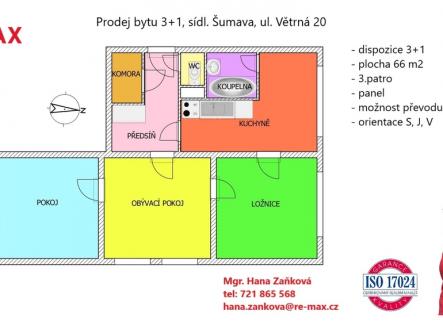Prodej bytu 3+1, 66 m2, převod do OV, sídl. Šumava, ul. Větrná