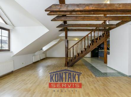 Exkluzivně nabízíme k prodeji zděný mezonetový byt 3+kk, který se nachází v oblíbené části širšího centra Českých Budějovic, Riegrově ulici. Byt je umístěn ve 3. NP (půdní vestavba) menšího činžovního domu, který byl v roce 2005 kompletně rekonstruován. Byt samotný se skládá z velkého obývacího pokoje s kuchyňským koutem, samostatné ložnice a velké koupelny s rohovou vanou. V mezonetové části bytu se pak nachází jedna ložnice a obytná galerie. Byt je vybaven původní kuchyňskou linkou se spotřebiči. Vzhledem k celkové velikosti obytného prostoru je byt možno v rámci předpokládané rekonstrukce dispozičně rozšířit až na 5+kk. K bytu náleží sklep a samostatná garáž v přízemí domu (43 m2), která je vhodná jako skladovací prostor (parkování pouze pro nižší vůz). Topení a ohřev vody zajišťuje plynový kotel. K dispozici je též menší společná zahrada s dvorkem. Financování je zajištěno hypotečním úvěrem, doporučujeme osobní prohlídku. PENB G.