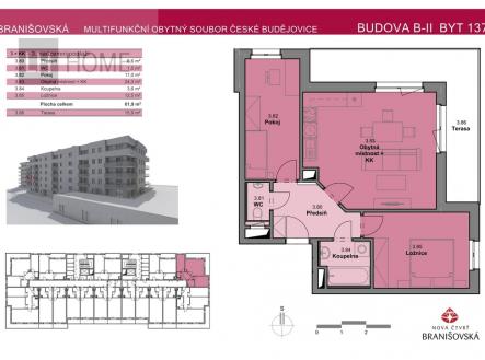 Družstevní byt 3+kk s terasou v projektu Nová čtvrť Branišovská – možnost převodu do osobního vlastnictví Představujeme vám atraktivní nabídku v rámci druhé etapy moderního rezidenčního projektu Nová čtvrť Branišovská B-I–II–III – ideální kombinaci komfortního bydlení, flexibilního financování a výhodné lokality. Nabízíme byt 3+kk o velikosti 61,90 m² s terasou 15,90 m², umístěný ve 3. patře novostavby bytového domu B-II. Tento prostorný byt je skvělým řešením pro páry, mladé rodiny nebo jako cenově dostupná alternativa ke klasickému vlastnictví. Výhody družstevního bydlení: Nízká počáteční investice bez potřeby hypotéky Měsíční splátky Možnost převodu do osobního vlastnictví v budoucnu Bez zátěže na vaši úvěrovou bonitu Byt je navržen s důrazem na moderní styl a funkční dispozici, která poskytuje dostatek prostoru pro pohodlné bydlení. V ceně je zahrnuto kvalitní standardní vybavení, které odpovídá současným nárokům klientů. O projektu: Celkem 225 bezbariérových bytů různých dispozic (1+kk až 4+kk) Každý byt má balkón, lodžii nebo terasu Možnost přikoupení garážového parkovacího stání (od 390 000 Kč) a sklepa Harmonogram a vlastnictví: Kolaudace domu B-II je plánována na 4. čtvrtletí roku 2028 Družstevní forma s možností převodu do osobního vlastnictví Zaujala vás tato nabídka? Kontaktujte nás – rádi vám vysvětlíme princip družstevního bydlení, poradíme s financováním a domluvíme osobní konzultaci. Nová čtvrť Branišovská – bydlení, které roste s vámi.