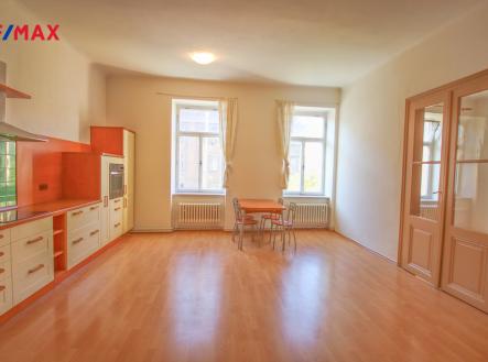 Nabízíme vám k prodeji zděný byt v žádané lokalitě v centru města. Byt o dispozici 3+kk a ploše 78 m2 se nachází ve druhém nadzemním podlaží (1.patře) čtyřpatrové budovy. Do bytu se vchází předsíní (7 m2), ze které je přístup do koupelny (8 m2), pokoje (11 m2), technické místnosti a obývacího pokoje s kuchyňským koutem (29 m2). Kuchyňská linka je osazena dřezem, sklokeramickou varnou deskou a elektrickou troubou, myčkou, digestoří. Obývací pokoj (29 m2) je průchozí, je z ní přístup do ložnice o ploše 20 m2 . Obývací pokoj a ložnice jsou orientovány na jihozápad, pokoj a koupelna na severovýchod. V bytě se nachází technická místnost ploše 3 m2, ve které se nachází plynový kotel. Byt je vytápěn plynovým kotlem. Byt volný ihned. Fond oprav 850,- Kč Energetický štítek na dům nebyl zpracován.
