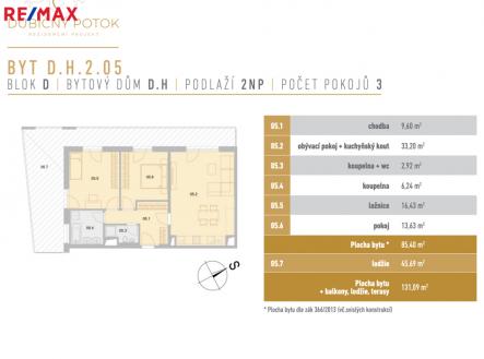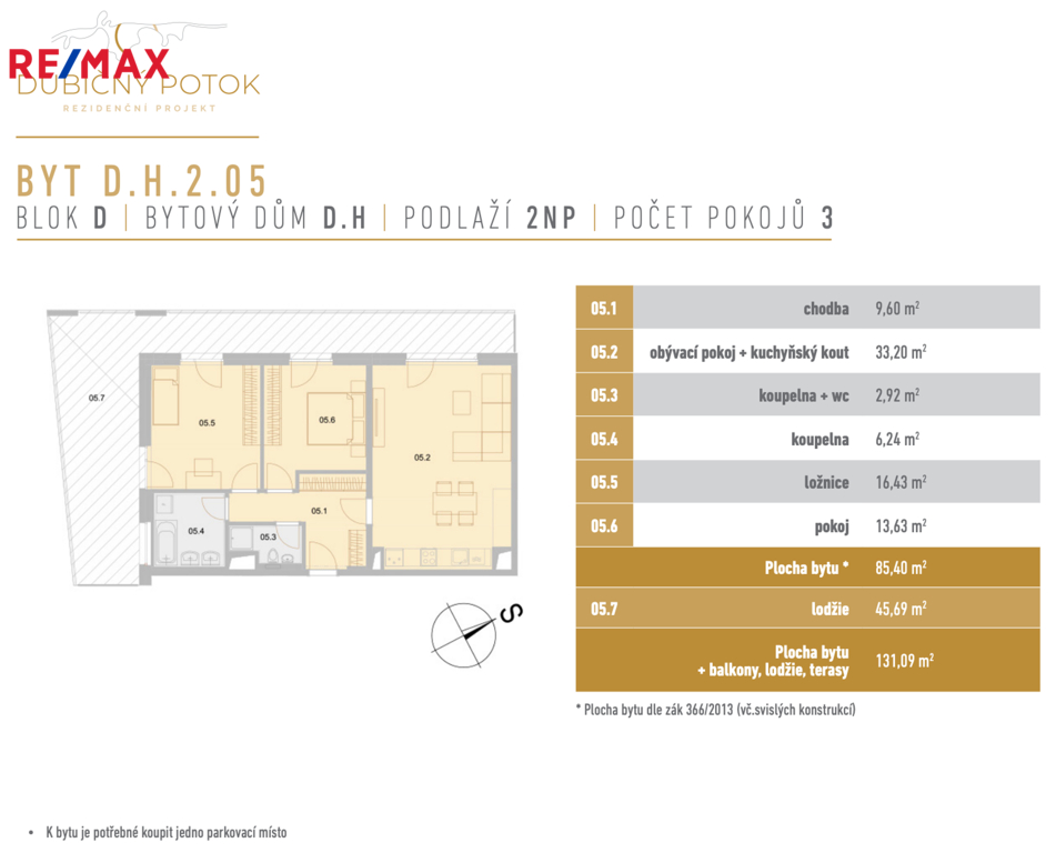 V ceně bytu od nás nyní získáte dárek v podobě vybavení od HANÁK NÁBYTEK v hodnotě 480 000 Kč ZDARMA. Přijďte se podívat do našeho vzorového bytu a zjistěte, co všechno jsme za tuto hodnotu dokázali zařídit! Tato nabídka je časově omezená a nevztahuje se na byty 1+kk. Kompletní nabídku bytů za akční ceny i další bonusy při rychlém jednání až do výše 150 000 Kč najdete na našem webu. Nabízíme bytovou jednotku D.H.2.05 o dispozici 3+kk a celkové výměře 131,09 m2. Velkolepá rohová lodžie o výměře 45,69 m2 propojuje všechny místnosti bytu. Každý člen rodiny tak má přístup k odpočinkové zóně, kterou si zde vytvoříte. Byt je připraven k okamžitému nastěhování. V projektu je k dispozici pohodlné parkování v podzemní garáži a zastávka MHD přímo před domem. V přízemí rezidence brzy vzniknou nové obchodní jednotky, mezi nimi dětská skupina, tetovací studio, kadeřnictví, kosmetika, kavárna a další služby. Nová rezidence Dubičný Potok nabízí moderní a klidné bydlení v zeleni s atriem, revitalizovanou vodní plochou, naučnou stezkou, přírodním hřištěm, workoutovým prostorem, komunitním grilem, interiérovou rezidenční fitness zónou 24/7 a dalšími prvky pro relaxaci. Veřejné prostranství je navrženo udržitelně – zelené střechy spolu s atriem pomáhají optimalizovat mikroklima budov. Součástí projektu je také cyklostezka, kolárna a myčka kol. S financováním vám ochotně pomůže naše finanční oddělení. Fotografie byly pořízeny ve vzorovém bytě 3+kk.