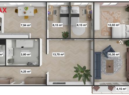 Nabízíme Vám ke koupi velmi prostornou bytovou jednotku v osobním vlastnictví, o dispozici 4+1 s lodžií a velkým zděným sklepem, a celkové ploše 87,66 m2 v ul. Průběžná, České Budějovice. Bytová jednotka se nachází ve 3. patře (4.NP) pěti podlažního bytového panelového domu, který prošel revitalizací (plastová okna, zateplení, fasáda, atd.). Samotný byt je ve velmi dobrém stavu (po částečné rekonstrukci) a má užitnou plochu 78,29 m2 + lodžie 4,15 m2 + zděný sklep v přízemí domu cca 5,22 m2. Jednotlivé výměry místností, včetně uspořádání, najdete v půdorysu ve fotografiích. Orientace bytu je na severozápad a jihovýchod. Vytápění ústřední dálkové. V domě je k dispozici společná sušárna a kolárna. V příštím roce dojde k výměně výtahu za nový. Jedná se o velmi klidnou a žádanou lokalitu v blízkém dosahu do centra města. Veškerá občanská vybavenost je v pěším dosahu (obchody, služby, pošta, restaurace, obchodní centrum IGY, Poliklinika Pražská, školy, školky, atd.). Zastávka MHD je jen pár kroků od domu. Termín nastěhování: 1. 6. 2026. Nemovitost je vhodná jak trvalému bydlení, tak i jako zajímavá investice na pronájem. V případě jakýchkoliv dotazů, či domluvení prohlídky bytu, kontaktujte přímo makléře zakázky.