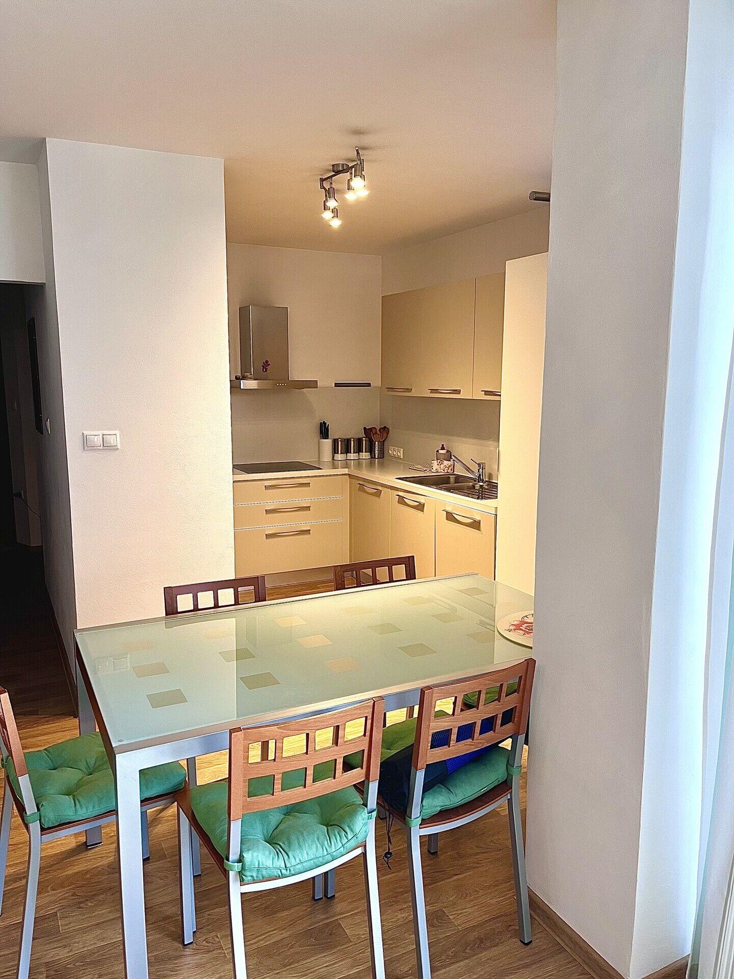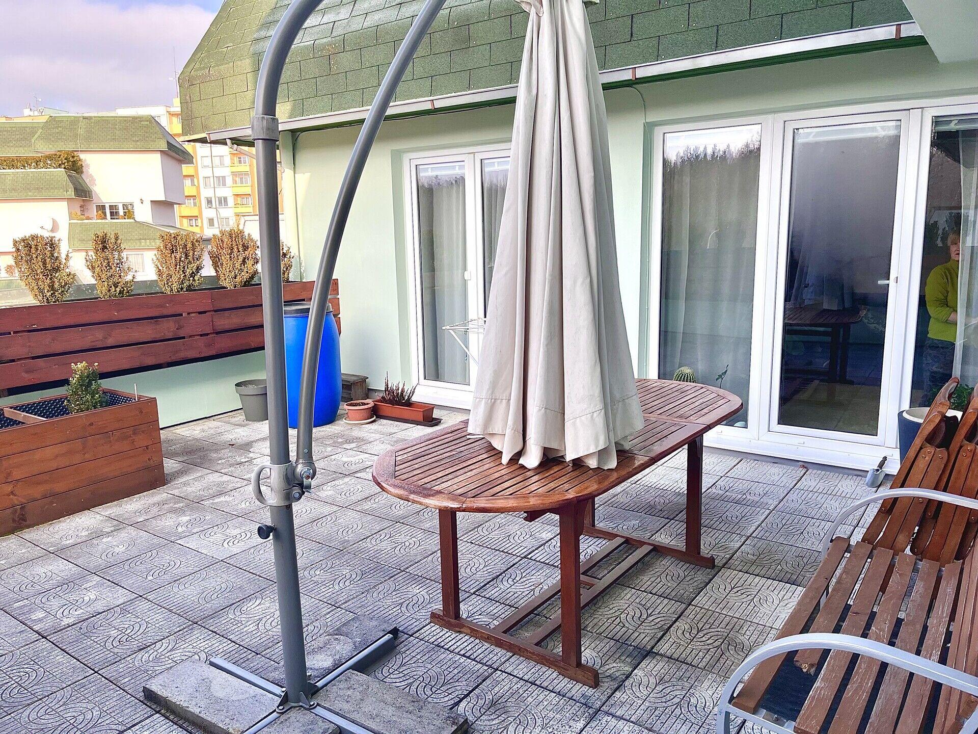 Dovolte , abychom Vám nabídli atypický byt 4KK o výměře 120,76m2. Nachází se v klidné lokalitě blízko přírody s velkou terasou a dvěma parkovacími stání 30m2 v suterénu domu. Dům, ve kterém se byt nachází je orientován na jiho-západ. Byt zaujme velkorysým prostorem, terasou plnou zeleně, Byt o rozloze 120,76 m2 je umístěn v třetím nadzemním podlaží ze čtyř. Nabízí krásný výhled na krásnou přírodu a Branišovský les. Hlavním prostorem bytu je prostorný obývací pokoj 28,47m2 se vstupem na velkou terasu 36m2 a kuchyňským koutem do U 10,45.Na terasu lze pak vstoupit i z ložnice 14,81m2. Ze dvou dětských pokojů (15,74 a 10,75m2) jsou okna orientována na jiho-západ s pohledem na terasu a lesy. Koupelna je vybavena vanou, toaletou ,umyvadlem a bidetem. V podlaze lze zapnout i elektrický ohřev.Dále je zde k dispozici ještě jedna samostatná toaleta s umyvadlem a ruční sprškou. V bytě najdeme velký prostor šatny-technická místnost 12,57m2 , kde je zavedena voda a odpad pro možnost umístění pračky a sušičky prádla. Byt příjemně rozděluje chodba mezi pokoji 19m2. V mezipatře, tedy velice blízko bytu je umístěn zděný sklep 3m2. V suterénu domu jsou dvě parkovací stání 14,4m2 15,6m2. Celý byt je prostorný s dostatkem soukromí. Ideální pro náročné rodiny, které preferují dostatek prostoru, klid a blízkost k přírodě. Byt prošel celkovou rekonstrukcí-nová koupelna, vyměněná okna v celém bytě, podlahy.