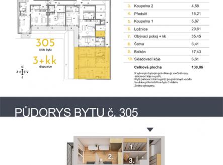 V projektu Šrámkovka nabízíme poslední volné byty: 2x 3kk, 1x 4kk a 1x střešní Penthouse. Nabízíme ke koupi jedinečný byt v exkluzivním bytovém komplexu, který je ideální pro klidné rodinné bydlení. Architekt Jaromír Kročák ho projektoval s důrazem na velkorysé rozměry jednotlivých místnosti a spoustu úložných prostor. Součástí nabídky je byt s číslem 305. Toto velkoryse pojaté 3+kk nabízí plochu rodinného domu. Při vstupu vejdete do obří předsíně/šatny, jejíž velikosti je neuvěřitelných 16,21 m2. Obývací pokoj s kuchyňskou linkou svou velikostí atakuje byt 1+kk. Hlavní ložnice je na opačné straně bytu a poskytuje maximální soukromí. Má walk-in šatnu, přes kterou se vchází do vlastní koupelny. Další, velká koupelna je umístěna v centrální části bytu. Třešínkou na dortu je jednoznačně velká terasa (17,43 m2). Výhled a vstup je na ni ze všech obytných místností buď přes francouzská okna nebo posuvné okno (hliníkový HS portál). Byt je orientovaný na západ směrem do vnitrobloku. V ceně je prostorná skladovací kóje (6,61 m2) umístěná na patře. K bytu lze přikoupit jedno parkovací stání v prvním nadzemním podlaží a uzamykatelnou garáž pro jednostopá vozidla umístěnou ve vnitrobloku. Bytový dům je ve fázi výstavby a vzniká v něm celkem 20 bytů, volných je již jen posledních 6. Předání je plánováno na květen roku 2026. Na výběr máte z dispozic 3+kk a 4+kk. V bytě najdete prémiové materiály a značky: dubové podlahy s podlahovým vytápěním, vnitřní dveře SAPELI model Elegant Komfort s rozetovými klikami FO-NAXOS-HR, koupelnu a WC zařízené dlažbou a obklady zn. RAKO, nábytkovými umyvadly Sapho Kare s bateriemi Hansgrohe Vernis, sprchovou zástěnou zn. Hűppe, sanitou zn. Hansgrohe, WC systémem zn. Geberit, okna s trojsklem Otherm ALFA EVO. K největšímu jihočeskému OC IGY dojdete za 5 minut, dětské hřiště za rohem. 200 m od domu se nachází Palackého náměstí.. Celou oblast lemují významné dopravní tepny, které zaručující výbornou dopravní dostupnost. Na dálnici D3 jste za pouhých 5 minut. Samotná ulice a její okolí je přitom velice poklidná a dopravně nevytížená. 10 TOP projektu • Velké rozměry místností • Nadstandardní velikost balkonů a teras • Spousta úložných prostor • Prostorné sklady k bytům na patře • Podlahové vytápění • Posuvná francouzská okna s HS portály • Příprava na předokenní rolety a klimatizaci • Prostorná krytá parkovací místa • Uzavřené garáže pro jednostopá vozidla • Zelená zahrada Uvedená cena je včetně DPH. Výměry místností naleznete na přiloženém půdorysu. 3D model a grafika jsou pouze ilustrativní a nemusí odpovídat skutečnosti. Další informace naleznete na stránkách projektu Šrámkovka.