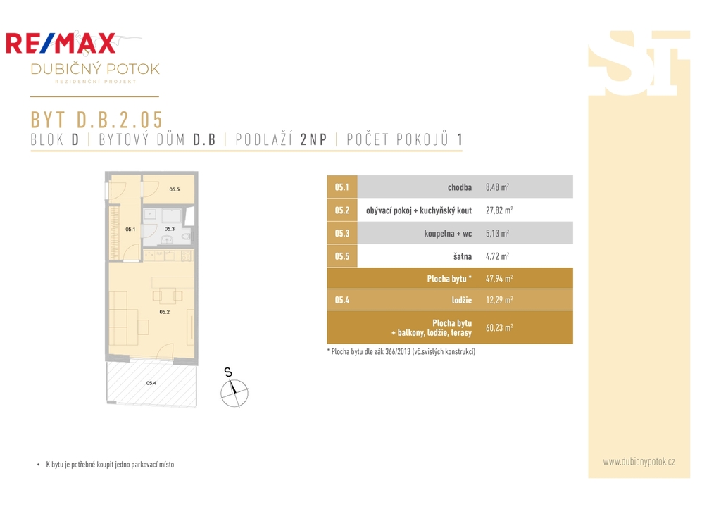 V ceně bytu od nás nyní získáte dárek v podobě vybavení od HANÁK NÁBYTEK v hodnotě 480 000 Kč ZDARMA. Přijďte se podívat do našeho vzorového bytu a zjistěte, co všechno jsme za tuto hodnotu dokázali zařídit! Tato nabídka je časově omezená a nevztahuje se na byty 1+kk. Kompletní nabídku bytů za akční ceny i další bonusy při rychlém jednání až do výše 150 000 Kč najdete na našem webu. Nabízíme exkluzivní bytovou jednotku 1+kk (D.B.2.05) v rezidenci Dubičný Potok v Českých Budějovicích. K prostorné ploše 47,94 m² náleží také velká lodžie 12,29 m², která poskytuje dostatek soukromí i místa k odpočinku. Dispozice 2+kk lze dosáhnout pomocí úpravy formou příčky (není součástí ceny). Touto úpravou si oddělíte spací prostor od obytné místnosti. Neumíte si to představit? Připravili jsme pro vás upravený půdorys, ve kterém vidíte i dispozici po úpravě. Byt je připraven k okamžitému nastěhování. V projektu je k dispozici pohodlné parkování v podzemní garáži a zastávka MHD přímo před domem. V přízemí rezidence brzy vzniknou nové obchodní jednotky, mezi nimi dětská skupina, tetovací studio, kadeřnictví, kosmetika, kavárna a další služby. Nová rezidence Dubičný Potok nabízí moderní a klidné bydlení v zeleni s atriem, revitalizovanou vodní plochou, naučnou stezkou, přírodním hřištěm, workoutovým prostorem, komunitním grilem, interiérovou rezidenční fitness zónou 24/7 a dalšími prvky pro relaxaci. Veřejné prostranství je navrženo udržitelně – zelené střechy spolu s atriem pomáhají optimalizovat mikroklima budov. Součástí projektu je také cyklostezka, kolárna a myčka kol. S financováním vám ochotně pomůže naše finanční oddělení. Vizualizace jsou pouze ilustrativní.