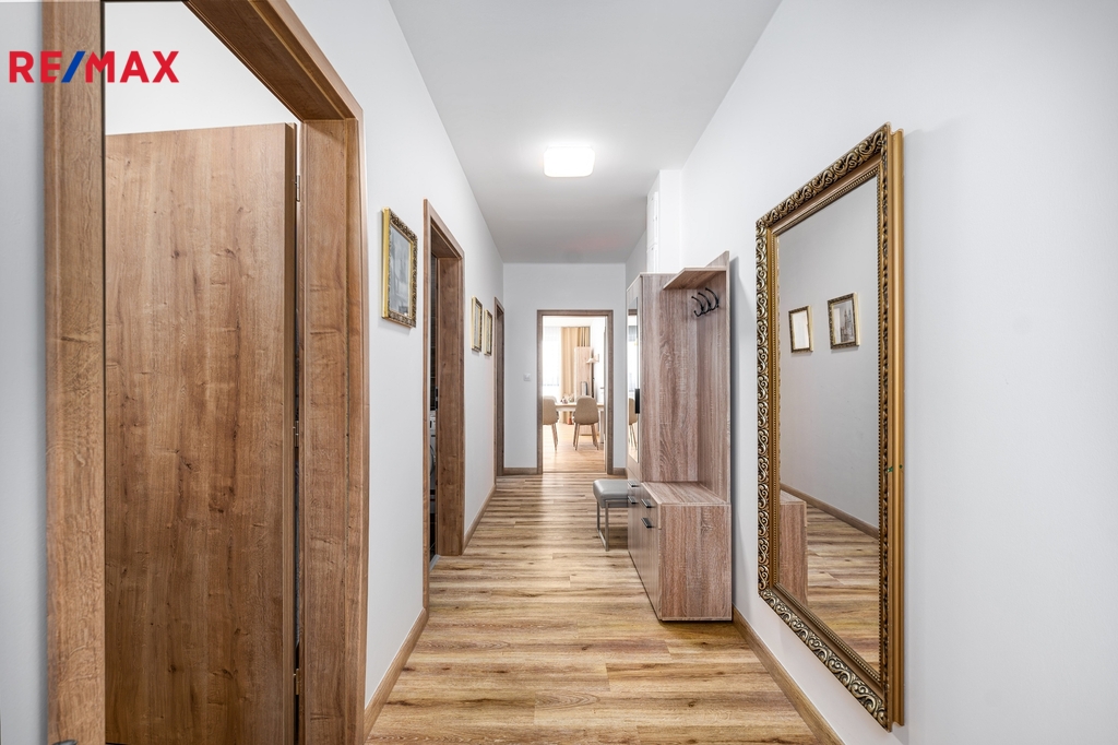 Nabízíme ke koupi bytovou jednotku s celkovou plochou 72,8 m2, která se nachází ve 4.patře šestipatrového bytového domu v komplexu Nová Vltava, situovaném v těsné blízkosti OC Géčko, v lokalitě s komplexní občanskou vybaveností a v místě s velmi dobrou dopravní dostupností (zastávka MHD před domem). Bytová jednotka je ve stavu nového bytu, v roce 2024 (po kolaudaci) byla zařízena, vybavena a nikdy majiteli nevyužívána (ani nepronajímána). Dispozice bytu (podlahová plocha 64,3 m2) sestává z prostorné vstupní chodby, východně orientovaného obývacího pokoje s kuchyňským koutem (nová kuchyňská linka kompletně vybavena spotřebiči – varná deska + trouba, myčka, lednice) a přímým vstupem na balkon (4,3 m2), dalšího samostatného pokoje (ložnice) se západním výhledem a vstupem na další balkón (4,3 m2), komory (šatna, technická místnost), koupelny se sprchovým koutem, umyvadlem a samostatného WC. Půdorys bytu, včetně jeho umístění v domě a na podlaží, naleznete v obrazové části inzerce Vytápění bytu je zajištěno ústředním topením s dálkovým rozvodem (teplárna ČB). Elektřina 230 V. Rozvody TV a internetu. V domě je výtah. Součástí prodeje je vlastní parkovací stání (3 x 6 m) situované v garáži v přízemí objektu. Při výstavbě domu a následném vybavení a zařízení bytů byl kladen hlavní důraz na kvalitu - dům splňuje energetickou náročnost třídy B (velmi úsporná). Celkové měsíční náklady související s provozem bytu jsou ve výši cca 4.000 Kč. Správcem objektu je společnost Triumfa, v domě je funkční společenství vlastníků jednotek. Nemovitost doporučuji zájemcům hledajícím nemovitost v širším centru města, v místě s dobrou dopravní dostupností, občanskou vybaveností a také v blízkosti přírody (PR Vrbenské rybníky, park Čtyři Dvory, cyklostezka). Pro více informací, nebo se zájmem o prohlídku mne prosím kontaktujte na níže uvedených kontaktech.