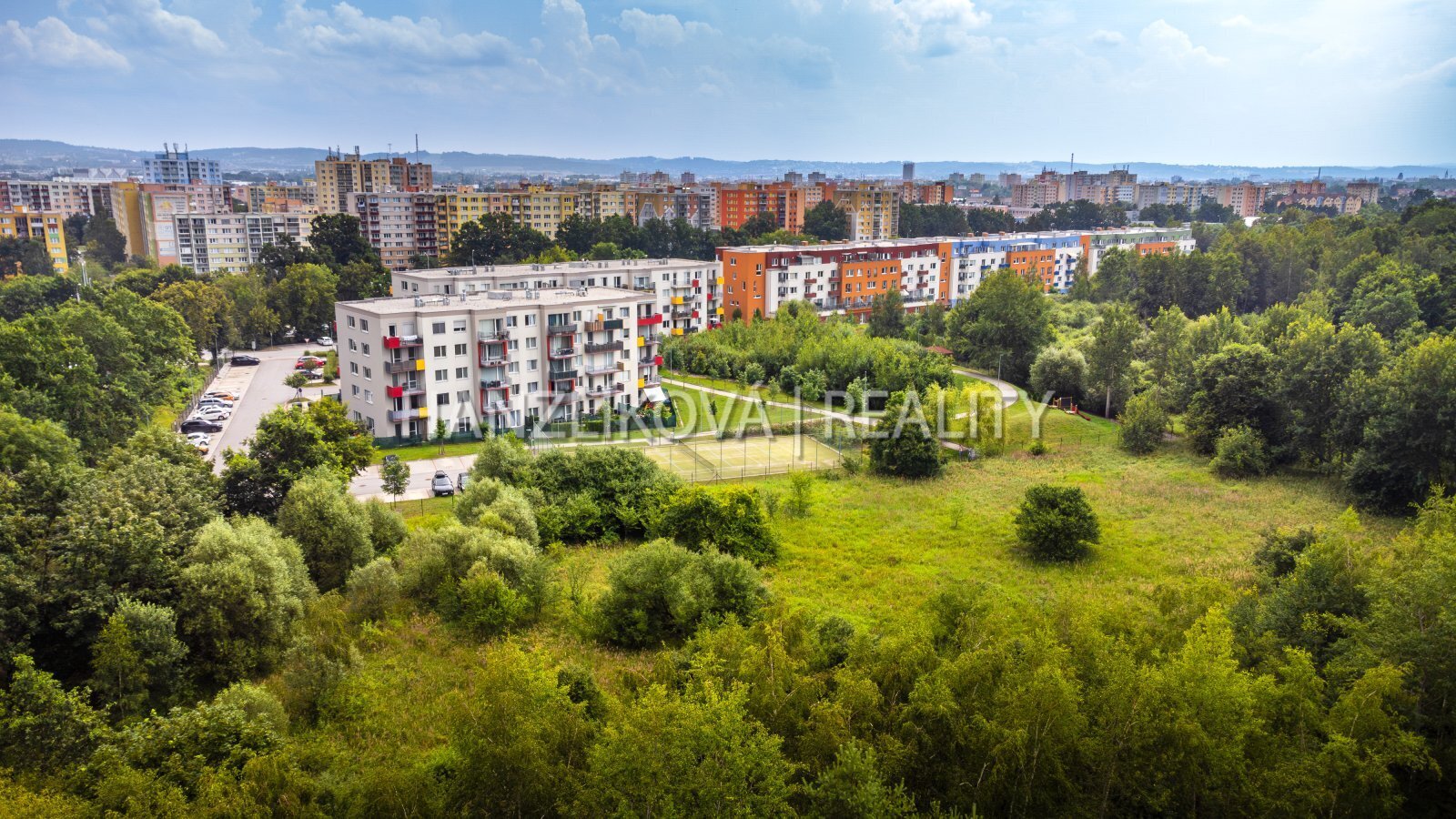 Nabízíme k prodeji novostavbu bytové jednotky o dispozici 2+kk (byt číslo A.511) s terasou, sklepem a dvěma vyhrazenými parkovacími stáními v klidné okrajové části města, na okraji sídliště Vltava, v těsné blízkosti lesa a Vrbenských rybníků. Byt se nachází v 5. NP ( posledním patře) zděného bytového domu s výtahem. Bytová jednotka má výměru 50m2 m2 + terasa o výměře 8,17 m2 + sklep o výměře 2,6 m2 a skládá se z: předsíně a chodby, kde je vestavná, prostorná vestavná skříň, koupelny s toaletou, ložnice a obývacího pokoje s kuchyňským koutem. Z obou místností je vstup na terasu. Byt je orientovaný na západ do vnitrobloku mimo silnici a má výhled do zeleně. V bytě zůstává kuchyňská linka na míru včetně spotřebičů, vybavení koupelny a vestavné skříně v chodbě, zbylé vybavení možno ponechat po domluvě. Byt je vhodný i jako investice včetně zajištění nájemníka a tržního nájemného. Dům se nachází na hezkém, klidném místě, s příjemným výhledem do zeleně. Dále se v blízkosti nachází přírodní rezervace Vrbenské rybníky, kde najdete turistické stezky, které také slouží jako cyklostezky. Kousek od domu jsou zastávky MHD(9,14,15), nákupní centrum „Géčko“ a veškerá občanská vybavenost (vše ve vzdálenosti 5–10 minut chůze nebo 2 minuty autem). K bytu náleží a je součástí kupní ceny : sklep ( komora) umístěná na patře o výměře 2,6 m2 a dvě vyhrazené parkovací stání umístěná před vchodem do domu. Byt bude k dispozici od března 2026.