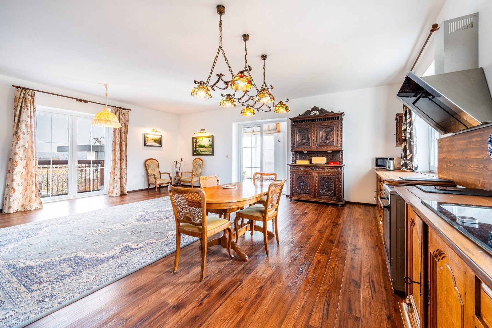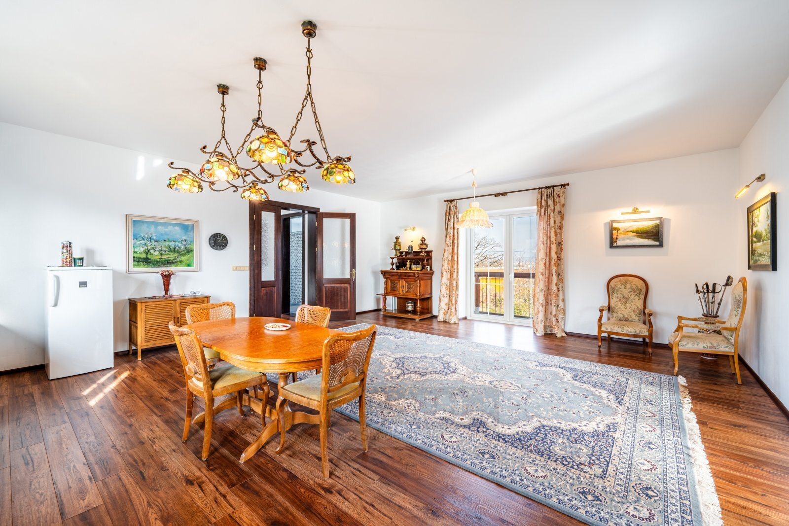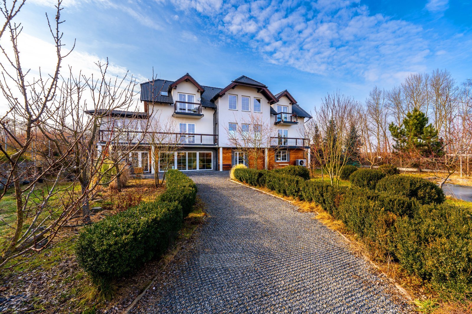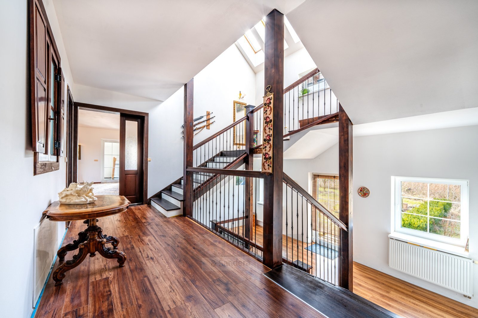 Nabízíme exkluzivní rodinnou vilu v prestižní a klidné části Českých Budějovic – Švábův Hrádek. Tento moderní dům s užitnou plochou 497 m² plus vytápěná zimní zahrada 33 m² byl zkolaudován v roce 2018 a nabízí luxusní bydlení pro náročné. Nemovitost se nachází na rovinatém pozemku, který zahrnuje pečlivě udržovanou zahradu se soukromým jezírkem plným dospělých ryb a bohatou ovocnou zahradou. Prostorné terasy s mimořádným výhledem na celé město a okolní zeleň nenechají nikoho lhostejným. Dům je rozdělen do tří podlaží a poskytuje maximální komfort pro rodinné bydlení. V suterénu se nachází kancelář (pracovna), technická místnost, kotelna, úložné prostory a velká hala o rozloze celkem 82 m2, izolovaná od soukromé plochy, která může být použita jako tělocvična nebo velká garáž nebo jako místnost pro komerční účely. Hlavní obytná část v 1. nadzemním podlaží se pyšní prostornou vstupní halou, která plynule navazuje na obývací pokoj a zimní zahrady. Útulná a prostorná kuchyně s jídelnou je vybavena špičkovými spotřebiči a nabízí dostatek prostoru pro rodinné stolování. Na stejném podlaží se nachází také obývací pokoj nebo pokoj pro hosty a koupelna se sprchovým koutem. Podkroví je vyhrazeno soukromé části domu. Dominantou je dvě ložnice, každá o rozměrech 53,5 m², které mají vlastní šatny. Z balkonů je nezapomenutelný výhled na staré město a park Stromovka. Dále zde nalezneme další prostornou a prosluněnou koupelnu s vanou. Veškeré dřevěné konstrukce a prvky, všechny stupně schodiště, interiérové dveře a kuchyňská linka jsou vyrobeny výhradně z přírodního masivního modřínu, dubu, buku nebo smrku ve střešních trámech. Vytápění zajišťuje dvouokruhový centrální domovní kotel s okamžitým přívodem teplé vody do jakéhokoli kohoutku v koupelně nebo kuchyni na jakémkoli patře a energeticky úsporné tepelné čerpadlo CTC EcoAir 420, na které je záruka do roku 2027. Díky kvalitní izolaci a moderním technologiím spadá nemovitost do energetické třídy B, což garantuje efektivní a úsporný provoz. V celém domě je vedeno podlahové vytápění a automatické řízení teploty, což vám zaručuje absolutní pohodlí v každém ročním období. Lokalita nabízí klidné a bezpečné bydlení s výbornou dostupností do centra Českých Budějovic. V okolí se nachází kompletní občanská vybavenost včetně škol, školek, obchodů, restaurací i sportovišť. Milovníci přírody ocení blízkost parků a cyklostezek. Tato výjimečná vila představuje jedinečnou příležitost pro ty, kteří hledají luxusní a prostorné bydlení na prestižní adrese.