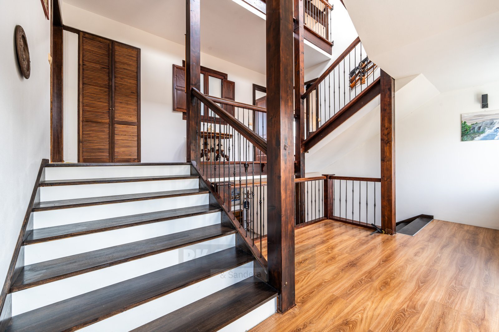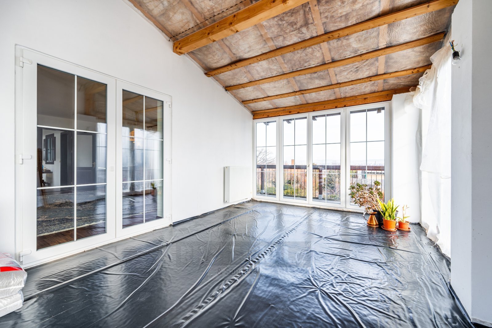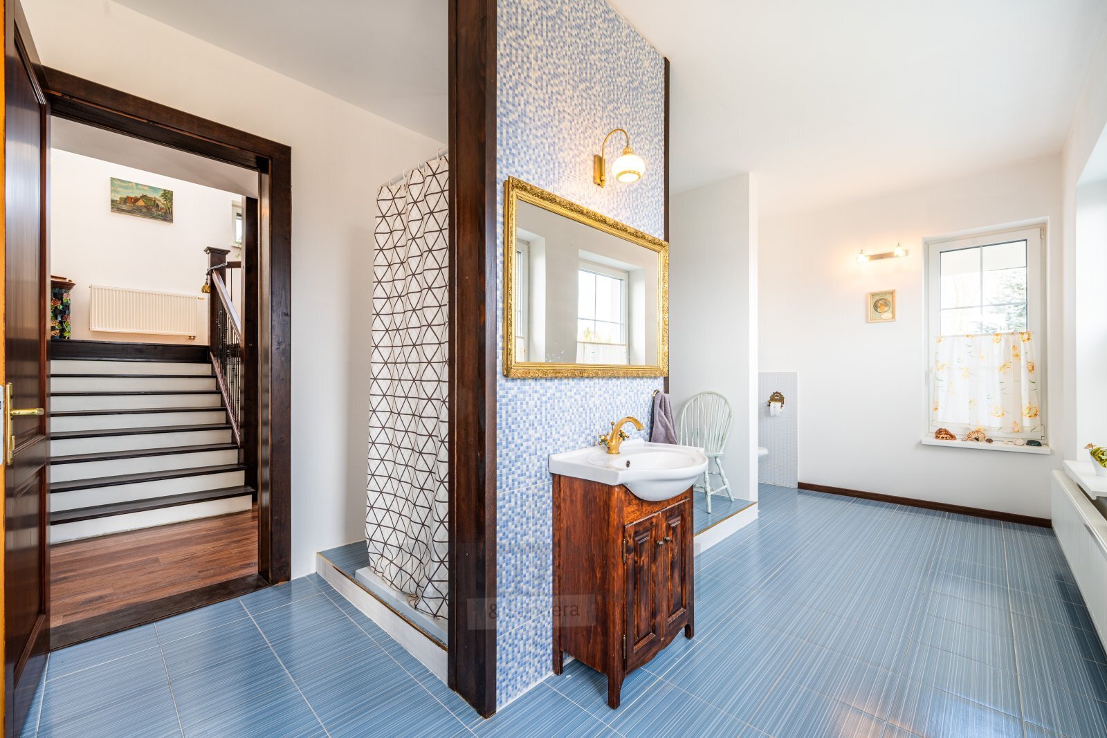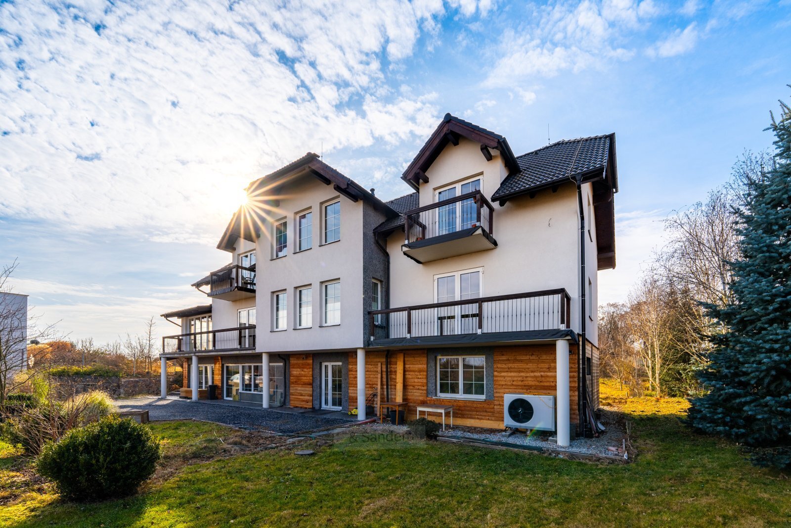 Nabízíme exkluzivní rodinnou vilu v prestižní a klidné části Českých Budějovic – Švábův Hrádek. Tento moderní dům s užitnou plochou 497 m² plus vytápěná zimní zahrada 33 m² byl zkolaudován v roce 2018 a nabízí luxusní bydlení pro náročné. Nemovitost se nachází na rovinatém pozemku, který zahrnuje pečlivě udržovanou zahradu se soukromým jezírkem plným dospělých ryb a bohatou ovocnou zahradou. Prostorné terasy s mimořádným výhledem na celé město a okolní zeleň nenechají nikoho lhostejným. Dům je rozdělen do tří podlaží a poskytuje maximální komfort pro rodinné bydlení. V suterénu se nachází kancelář (pracovna), technická místnost, kotelna, úložné prostory a velká hala o rozloze celkem 82 m2, izolovaná od soukromé plochy, která může být použita jako tělocvična nebo velká garáž nebo jako místnost pro komerční účely. Hlavní obytná část v 1. nadzemním podlaží se pyšní prostornou vstupní halou, která plynule navazuje na obývací pokoj a zimní zahrady. Útulná a prostorná kuchyně s jídelnou je vybavena špičkovými spotřebiči a nabízí dostatek prostoru pro rodinné stolování. Na stejném podlaží se nachází také obývací pokoj nebo pokoj pro hosty a koupelna se sprchovým koutem. Podkroví je vyhrazeno soukromé části domu. Dominantou je dvě ložnice, každá o rozměrech 53,5 m², které mají vlastní šatny. Z balkonů je nezapomenutelný výhled na staré město a park Stromovka. Dále zde nalezneme další prostornou a prosluněnou koupelnu s vanou. Veškeré dřevěné konstrukce a prvky, všechny stupně schodiště, interiérové dveře a kuchyňská linka jsou vyrobeny výhradně z přírodního masivního modřínu, dubu, buku nebo smrku ve střešních trámech. Vytápění zajišťuje dvouokruhový centrální domovní kotel s okamžitým přívodem teplé vody do jakéhokoli kohoutku v koupelně nebo kuchyni na jakémkoli patře a energeticky úsporné tepelné čerpadlo CTC EcoAir 420, na které je záruka do roku 2027. Díky kvalitní izolaci a moderním technologiím spadá nemovitost do energetické třídy B, což garantuje efektivní a úsporný provoz. V celém domě je vedeno podlahové vytápění a automatické řízení teploty, což vám zaručuje absolutní pohodlí v každém ročním období. Lokalita nabízí klidné a bezpečné bydlení s výbornou dostupností do centra Českých Budějovic. V okolí se nachází kompletní občanská vybavenost včetně škol, školek, obchodů, restaurací i sportovišť. Milovníci přírody ocení blízkost parků a cyklostezek. Tato výjimečná vila představuje jedinečnou příležitost pro ty, kteří hledají luxusní a prostorné bydlení na prestižní adrese.