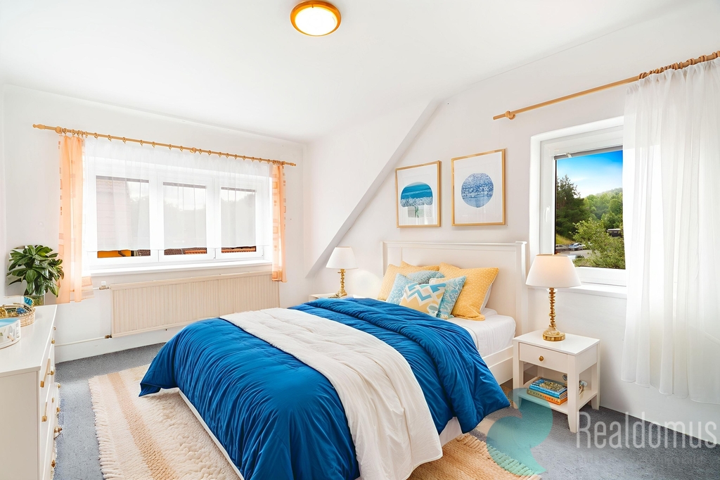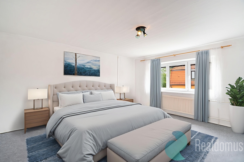 REALDOMUS Vám exkluzivně nabízí prodej rodinného domu s garáží a krásnou menší zahradou ve vyhledávané a lukrativní lokalitě Husova kolonie, ulice Korandova, České Budějovice. Nemovitost o dispozici 4+1 s možností půdní vestavby se nachází na pozemku o celkové ploše 295 m² (zastavěná plocha 190 m², zahrada 105 m²). Dům je celý podsklepený, což zajišťuje dostatek úložného prostoru a další možné využití. Dispozice domu: 1. NP: vstupní chodba, koupelna se sprchovým koutem a podlahovým vytápěním, kuchyně s jídelním koutem, obývací pokoj s krbem, ložnice 2. NP: dva pokoje a půdní prostor s možností přestavby na další obytný pokoj • Suterén: kompletní podsklepení • Součástí domu je také garáž, studna a venkovní posezení v okrasné části zahrady. Technické informace: • Částečná rekonstrukce – nová koupelna, částečně nové rozvody vody • Plastová okna – dvojskla • Vytápění zajišťuje plynový turbokotel • Nová střecha a vyvložkovaný komín (2003) • Udržovaná kuchyňská linka • Kanalizace řešena jímkou Výjimečná poloha: Dům se nachází ve velmi klidné ulici s výbornou dostupností do centra města. Veškerá občanská vybavenost je v docházkové vzdálenosti – škola, školka, obchod, lékař, restaurace i zastávka MHD (2 minuty chůze). Pro koho je nemovitost ideální? Hledáte-li dům s potenciálem, který si upravíte přesně dle vlastních představ a zároveň chcete bydlet v jedné z nejvyhledávanějších lokalit Českých Budějovic, pak je tato nemovitost ideální právě pro Vás. Neváhejte mě kontaktovat pro více informací či domluvení osobní prohlídky. V případě zájmu Vám rádi zajistíme výhodné financování prostřednictvím našich osvědčených partnerů. Uvedené výměry jsou orientační. V případě více zájemců bude nemovitost prodána nejlepší nabídce a majitel si vyhrazuje právo vybrat kupujícího na základě jim zvolených kritérií. Veškeré zveřejněné údaje v tomto inzerátu mají pouze informativní charakter.