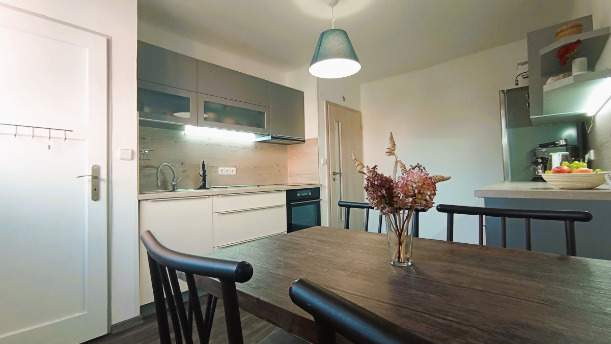 K dlouhodobému podnájmu nabízíme moderně zařízený byt 2+1 s balkonem ve zděném domě v centru města. Byt o celkové ploše 57 m2 se nachází ve druhém patře cihlového domu bez výtahu s možností parkování na uzavřeném pozemku za domem. Před domem je park se vzrostlou vegetací. Byt je po rekonstrukci a nabízí se částečně vybavený. Kuchyň je vybavena moderní kuchyňskou linkou s vestavnými spotřebiči - elektrická trouba, sklokeramická varná deska a digestoř. Dále zde nalezneme lednici s mrazákem a jídelní stůl + 4 židle. Součástí kuchyně je prostorný špajz. V obývací pokoji je balkon s výhledem do zahrady za domem. Nábytek vyfocený na fotkách si majitel odveze. Koupelna je vybavena vanou, umyvadlem se skříňkou, otopným žebříkem a je zde umístěno i WC. V předsíni se nachází velká vestavěná skříň. K bytu náleží sklep v přízemí domu a parkovací stání na uzamčeném pozemku, kde je také zahrada s posezením a pískoviště pro děti. Dům se nachází v blízkosti nádraží a OD Mercury, kde jsou obchody, restaurace a veškeré služby. Tři minuty chůze od domu je autobusová zastávka, kde jezdí několik linek MHD s výbornou dopravní obslužností. Byt je díky zahradě za domem a parčíku před domem obklopen zelení, což je uprostřed města příjemný bonus. Uvedena energetická kategorie G, jelikož nemáme k dispozici PENB. K nastěhování ihned. Byt pronajímá Ideální nájemce - služba, se kterou budete bydlet bezstarostně a za férových podmínek. Když se něco přihodí, k dispozici jsou správci, kteří s vámi vše vyřeší. Pomůžeme s veškerou administrativou, s nastavením plateb a zajistíme vám speciální pojištění. Pojďte bydlet s námi!