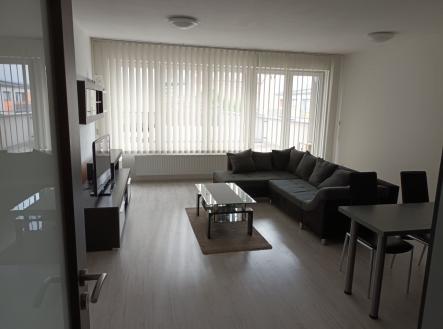 Pronájem bytu s prostornou terasou a garáží pro 2 auta, centrum města.