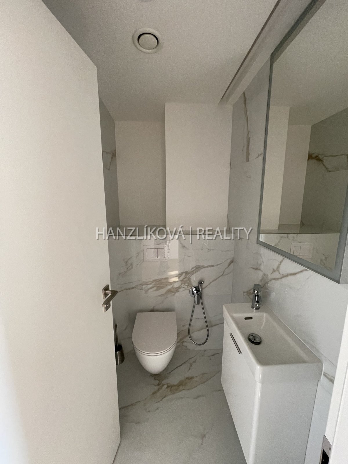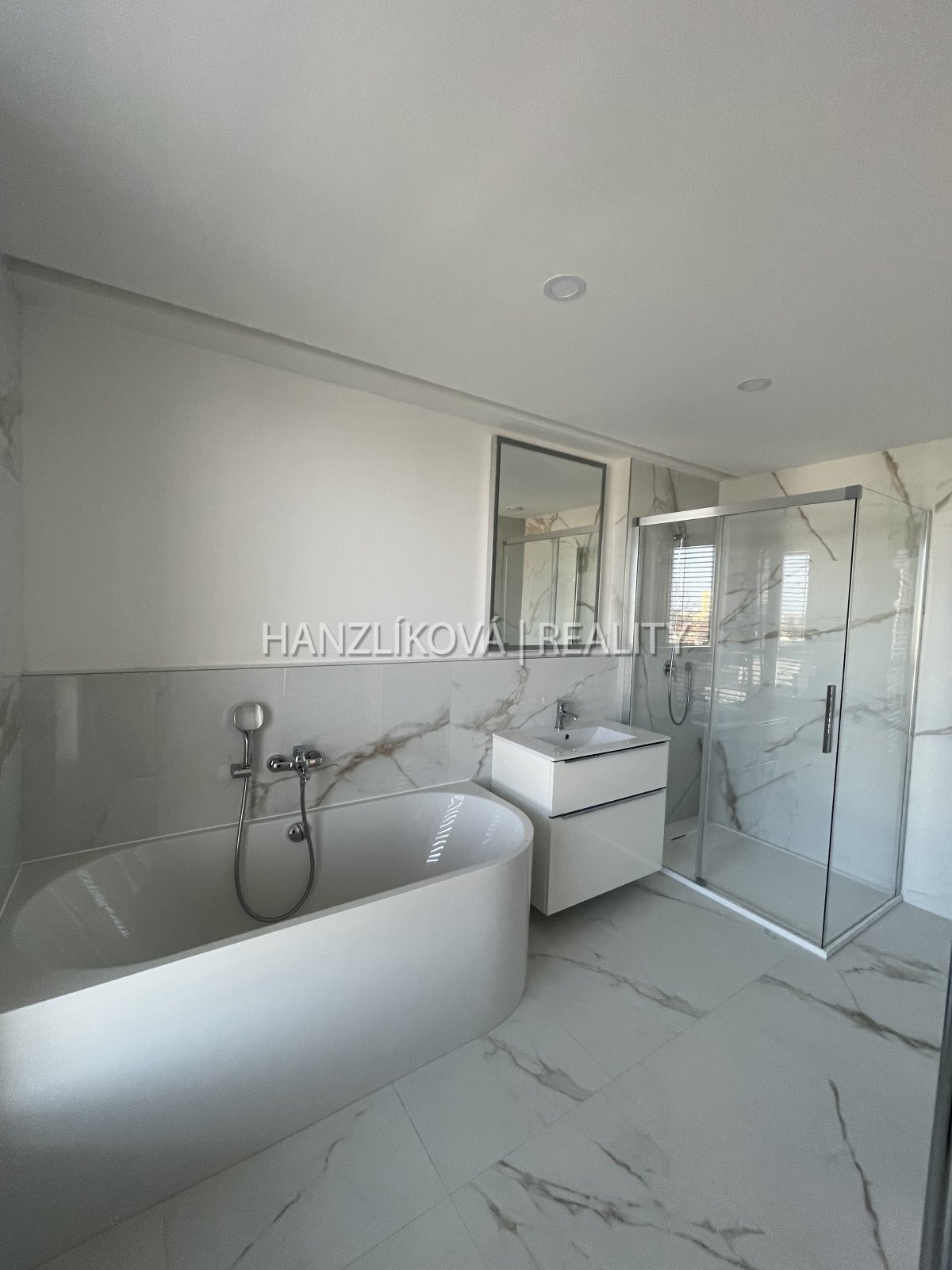 Exkluzivně nabízíme k pronájmu zcela novou bytovou jednotku 3+kk, byt číslo B.33, která se nachází v posledním patře ( 6. NP / 6NP) nově postaveného bytového domu "residence Hálkova". Byt o výměře 85 m2 + terasa 48 m2 je dispozičně řešen jako 3kk,je světlý prostorný byt a skládá se z těchto místností : předsíň s vestavnými skříněmi, pokoj, pokoj, koupelna se sprchovým koutem a vanou u, obývací pokoj s kuchyňským koutem a krásná terasa o výměře 48 m2, ze které je výhled včetně značkových elektrospotřebičů, osvětlení ve všech místnostech, klimatizační jednotky, předsíňová stěna, předokenní venkovní žaluzie. Dům má 6. NP a 1PP kde se nachází garážová stání a sklepní kóje, je vybaven výtahem, internet je řešen optickými kabely, vytápění je řešeno dálkově přes teplárnu, dům i jednotlivé byty jsou vybaveny vysokým standardem. Vysoký standard residence Hálkova podtrhuje dostatek parkovacích míst, která jsou umístěna na úrovni 1. podzemního podlaží domu. Tam se mimo jiné nacházejí i sklepy. Garážové stání včetně sklepu je možné pronajmout za úplatu - 2.000,- / měs. Pražské předměstí patří dlouhodobě k nejvyhledávanějším městským částem. Prestižní čtvrť tvořená bytovou a vilovou zástavbou, místo s nezaměnitelným geniem loci. Zde si naplno vychutnáte klid této lokality, která je výjimečná také svou dostupností. Za pár minut se můžete procházet u řeky Vltavy nebo nakupovat v IGY.