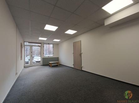 Nabízíme k pronájmu nebytový prostor v ulici Dr. Bureše. Jedná se o přízemí panelového domu, před kterým je bezplatné parkoviště. Komerční prostor je v současnosti zkolaudován k provozu kanceláře nebo ho lze využít jako sklad. Dispozici tvoří místnost hlavní kancelář o velikosti 28m2, chodba, vedlejší místnost o velikosti 16m2- vhodná jako sklad a sociál. Interiér prošel v r.2020 celkovou rekonstrukcí včetně nové elektroinstalace. Měsíční nájemné 3335,-Kč + 1600,-Kč záloha na služby. Odběr elektřiny bude smluvně převeden na nájemce. Volné ihned. Více informací v RK.