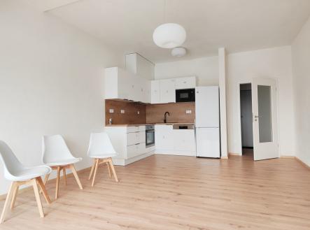 Nabízíme k pronájmu zcela nový byt 2+kk s terasou, sklepem a garážovým stáním v novostavbě bytového domu Rezidence Nemanice v okrajové části Českých Budějovic, v ul. K. Šatala. Byt se nachází v 5.NP (4. patro), má velikost 53,9 m2 + terasa o výměře 12,49 m2 a je orientován na jihovýchod. Byt se skládá z: předsíně, koupelny se sprchovým koutem a toaletou, komory, ložnice se šatnou, obývacího pokoje s kuchyňským koutem, terasy - vstup z obývacího pokoje. Byt je zařízen kuchyňskou linkou se spotřebiči (indukční varná deska, digestoř, trouba, lednice s mrazákem, myčka, mikrovlnka), jídelním stolem se židlemi, osvětlením ve všech místnostech a pevným vybavením koupelny. K bytu náleží sklep 2,9 m2 a garážové parkovací stání v 1.NP domu. Příjemná a klidná poloha, bydlení je vhodné pro všechny věkové skupiny. Pronájem nekuřákům bez domácích mazlíčků. Byt bude k dispozici po domluvě.