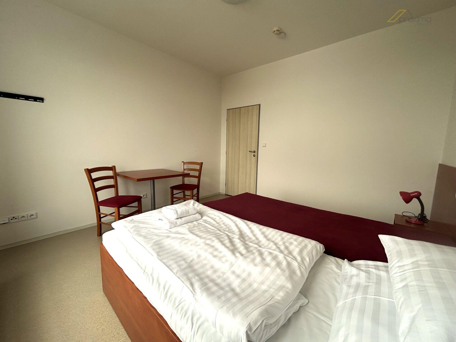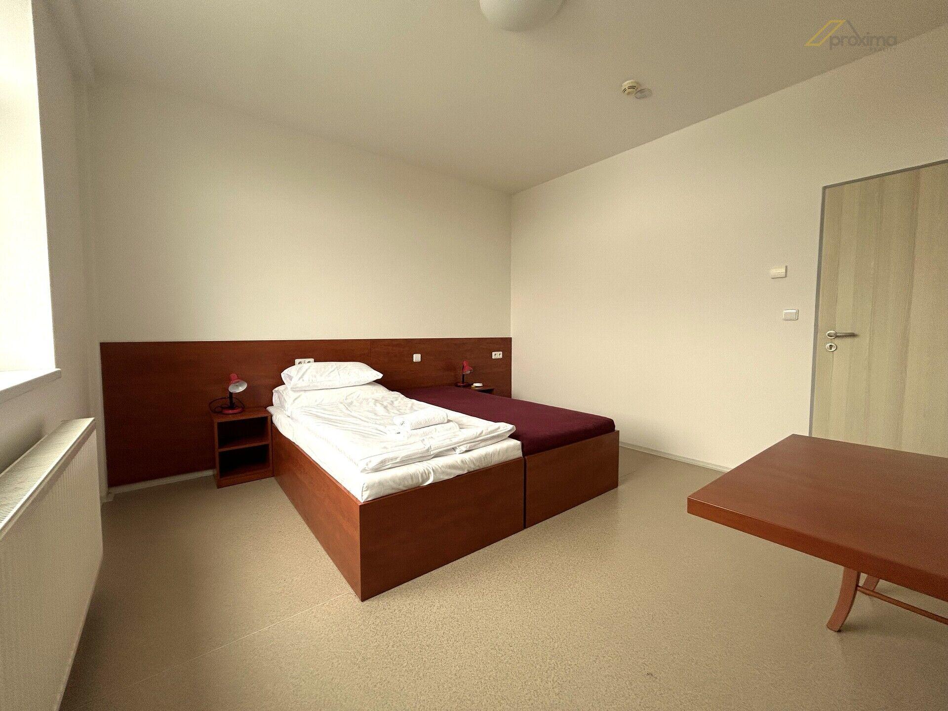 Proxima Reality nabízí pronájem v ubytovacím zařízení: apartmán s vlastní kuchyňkou a koupelnou v prostorách Sport Hotelu v Českých Budějovicích, Jiráskovo nábřeží. Pokoj je částečně vybaven: postele (bez matrací), lednice, stůl, židle, skříň - vše po dohodě, za příplatek možná matrace, nádobí. Samostatné měření elektřiny a vody. V ceně je Wi-Fi. V ceně není povlečení a peřiny. Lze domluvit úklid. Možnost využití parkování za 1000 Kč + DPH měsíčně. Možnost využití kolárny. Vhodné maximálně pro 2 osoby, pokoje jsou striktně nekuřácké. Možné i jako dlouhodobé ubytování pro firemní pracovníky. Volné ihned, preference je pro dlouhodobé ubytování. Jedná se o klidnou část města, přímo před objektem se nachází cyklostezka, nedaleko protéká řeka Vltava, v lokalitě je také sportoviště nebo kavárna. Apartmán je volný od 1.3.2026. Ubytování: 12.320 Kč vč. DPH/měs. Zálohy: 4.180 Kč vč. DPH/měs. Celkem: 16.500 Kč vč. DPH/měs. Vratná kauce: 20.000 Kč Provize RK: 15.000 Kč