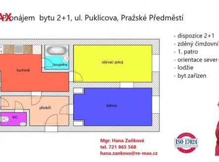 Pronájem zděného bytu 2+1 s lodžií, ul. Puklicova 11, Pražské sídliště