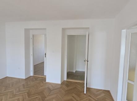 Nabídka dlouhodobého pronájmu zděného bytu v Otakarově ulici. Byt se nachází ve třetím patře zděného domu bez výtahu a je po celkové rekonstrukci. Dispozice: vstup, chodba, vpravo vestavná skříň, komora a koupelna se toaletou, sprchovacím koutem a umyvadlem. Dále se z chodby dostaneme vlevo do dvou samostatných pokojů, které jsou zároveň propojeny dveřmi a z jednoho z nich se dá ještě stejně jako z chodby vstoupit do kuchyně. Ta je vybavena novou kuchyňskou linkou s plynovým sporákem, digestoří a myčkou na nádobí. Vytápění bytu zajištují radiátory, na podlahách jsou masivní parkety a plovoucí podlaha a dlažba. Byt je ve velice dobrém stavu a k dispozici je dále samostatný sklep, společné prostory a možnost užívání pozemku ve vnitrobloku za domem. Nájemné činní 16 000,- Kč + 4 000,- Kč na zálohy na dodávku tepla a vody, plynu a elektřiny ( odběrné místo bude přepsáno na nájemce) Parkovaní je možné v ulici před domem v parkovací zóně pro rezidenty, nebo na placených parkovacích místech. Docházková vzdálenost do centra města s veškerou občanskou vybaveností v místě. Majitelé požadují při podpisu smlouvy složit jednu vratnou kauci a nájemné na první měsíc, dále potom jeden nájem za servis pro RK. Více informací u makléře zakázky, byt je volný od 1.3.2026.