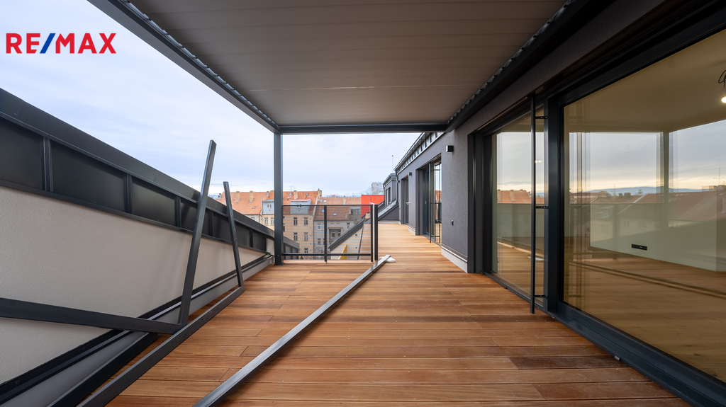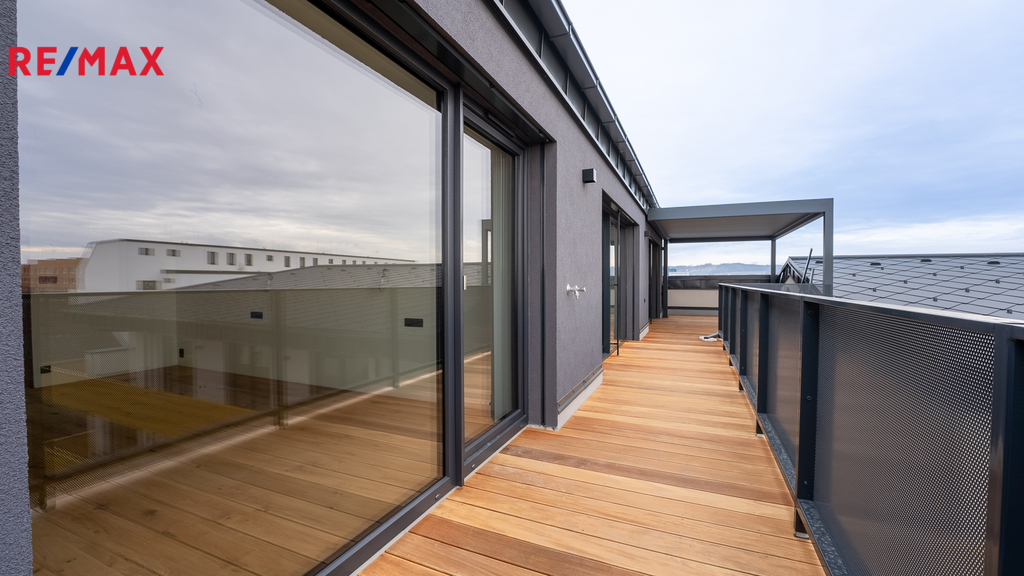 Hledáte komfort rodinného domu, ale chcete zůstat ve městě a mít vše na dosah? Tento výjimečný byt 4+kk (číslo 601) Vám nabídne velkorysý prostor, dvě terasy, naprosté soukromí a špičkové provedení, které se v běžné nabídce prakticky neobjevuje. Byt se nachází po celé ploše posledního podlaží nového moderního domu, což zaručuje naprostý klid a soukromí – na patře nemáte žádné sousedy. Díky privátnímu výtahu přímo do bytu se Váš domov stává skutečně pohodlným a exkluzivním místem pro každodenní rodinný život. Hlavní přednosti: Privátní výtah přímo do bytu Celé patro jen pro Vás – žádní sousedé Velká terasa po celé délce obývací části + druhá terasa u pokojů Bioklimatická pergola Předokenní žaluzie a dálkově ovládaná střešní okna Klimatizace v obytných místnostech Maximální prosvětlení díky HS portálům Podlahové vytápění, dřevěné podlahy Toalety s bidetem Vybavení: Dřevěné dubové podlahy, bezfalcové dveře, obklady RAKO, sanita Hansgrohe, sprchové zástěny Hűppe. Lokalita: Vše pro rodinný život v docházkové vzdálenosti – MŠ, ZŠ, SŠ, gymnázia, MHD, vlakové i autobusové nádraží. OC IGY 5 minut pěšky, Palackého náměstí 200 m. Rychlý nájezd na D3. Klidná ulice a tichý vnitroblok se zahradou. Cena včetně DPH. Orientační výměry místností jsou uvedené na přiloženém půdorysu.
