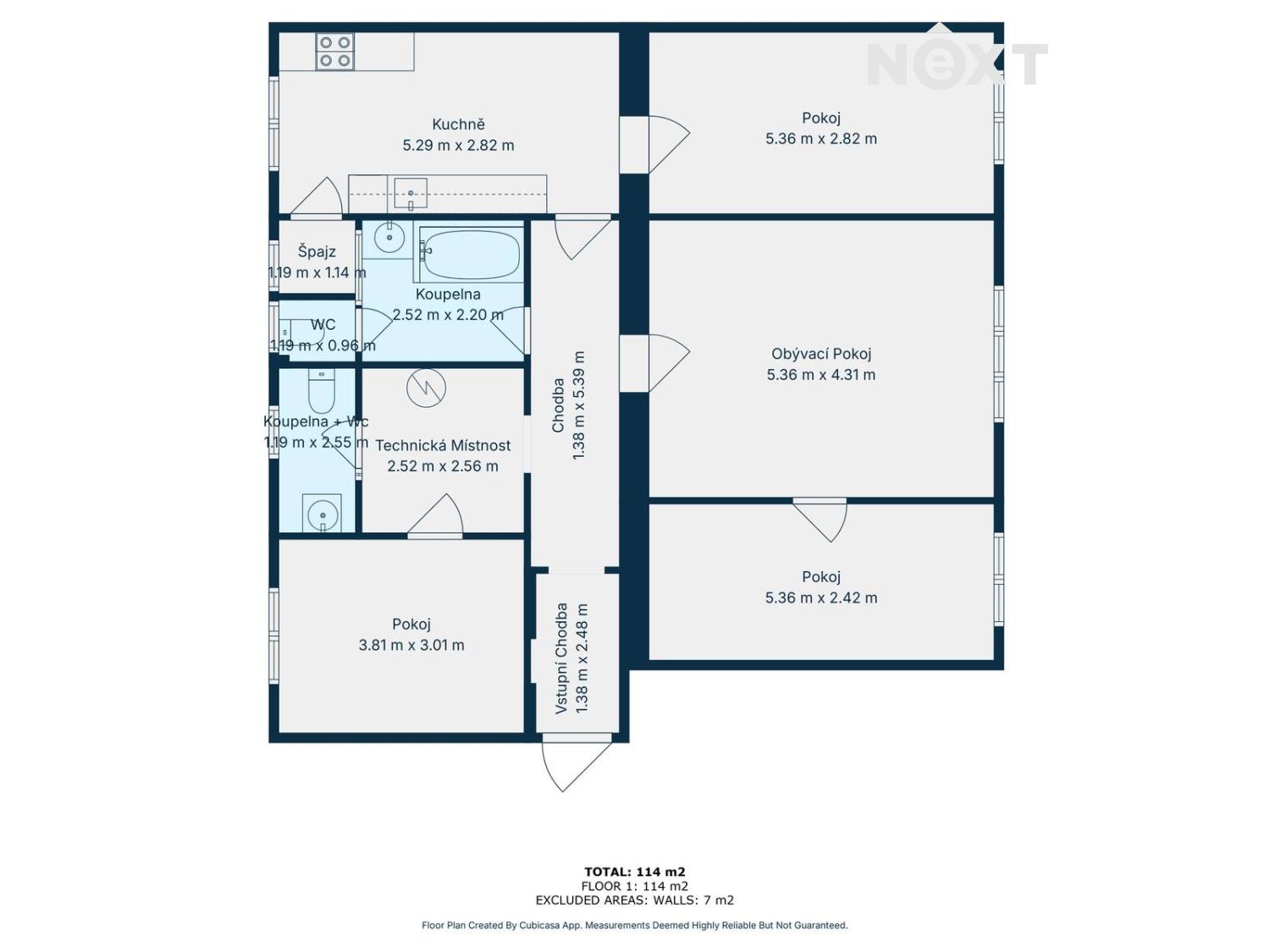Prostorný byt 4+1 s garáží, sklepy a pergolou v Českých Velenicích Realitní kancelář NEXT REALITY FUTURE exkluzivně nabízím zprostředkování prodeje prostorného, částečně zrekonstruovaného bytu o dispozici 4+1 a velikosti 105 m² na ulici Československých legií, jen pár minut od hraničního přechodu s Rakouskem. Hlavní přednosti bytu: • Dispozice 4+1 – ideální pro rodinu i náročnější klienty • Dvě koupelny – jedna s vanou, druhá se sprchovým koutem • Nová moderní kuchyně – vybavená vestavěnou myčkou, horkovzdušnou troubou a varnou deskou • Dva sklepy o celkové velikosti 20,2 m² – dostatek úložného prostoru • Vlastní garáž – pohodlné parkování a bezpečí pro váš vůz, parkovací místo je i před garáží • Pergola – ideální místo pro relaxaci a posezení s rodinou či přáteli • Půdní prostor 47,7 m² – k bytu náleží, a nachází se přímo nad bytem, nabízí se tedy možnost jeho propojení s bytem • Vytápění ústředním topením s vlastním plynovým kotlem – plná kontrola nad teplotou a náklady na vytápění • Ohřev vody zajišťuje bojler – nezávislost na dodávkách teplé vody Byt se nachází v domě pouze se čtyřmi bytovými jednotkami. Vjezd do dvora domu a ke garáži je přes dálkově ovládaná vrata. Lokalita nabízí výbornou dostupnost do Rakouska i veškerou občanskou vybavenost v dosahu. Pokud hledáte prostorné a komfortní bydlení s nadstandardním zázemím a skvělou polohou, neváhejte mě kontaktovat pro více informací nebo domluvení prohlídky. Byt je vyklizený a ihned k nastěhování. Pro komunikaci uvádějte evidenční číslo zakázky N112022.