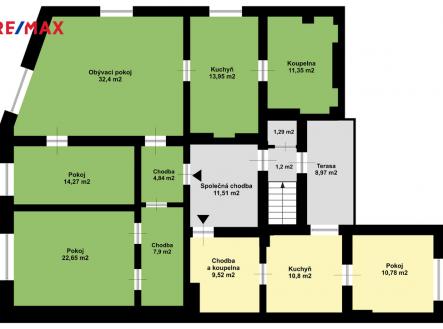 Ve výhradním zastoupení vlastníka si vám dovoluji nabídnout jedinečnou příležitost. Ke koupi nabízíme celé horní patro a půdu v domě přímo na náměstí v Českém Brodě. Tato nabídka je ideální jak pro vlastní bydlení, tak pro investory hledající zajímavé výnosové nemovitosti s dalším potenciálem rozvoje. V horním patře momentálně najdete 2 byty, společnou chodbu a terasu. Byt o dispozici 3+1 a velikosti 107 m² Velmi prostorný, světlý byt připravený k okamžitému nastěhování nebo pronájmu. Nabízí dostatek prostoru i pro velkou rodinu a příjemnou atmosférou s výhledem na náměstí. Byt o dispozici 1+1 a velikosti 31 m² Menší byt ve fázi před dokončením – ideální příležitost pro realizaci vlastních představ či budoucí pronájem. Z obou bytů je samozřejmě možné vytvořit jeden velký byt se 2 koupelnami. Současně s byty můžete užívat také půdu, 2 garáže a společný pozemek za domem. Půdní prostor o velikosti 140 m² Rozsáhlá půda vhodná k vestavbě dalších bytových jednotek. Zajímavý investiční potenciál pro další rozšíření. 2 garáže + podíl na pozemku za domem Praktické zázemí doplňuje pohodlné parkování a užívání společného pozemku ve vnitrobloku. Dům je do současnosti obýván a udržován. Přízemí domu slouží ke komerčním účelům a není součástí prodeje. Dům je napojen na elektřinu, kanalizaci, vodovod a plynovod. Díky své vynikající dopravní dostupnosti do Prahy, může být Český Brod zajímavou alternativou pro pražské bydlení. V Českém Brodě je plná občanská vybavenost. Najdete zde školy, školky, kompletní síť obchodů a služeb. Vlakem se dostanete do centra Prahy za 30 minut a autem za 20 minut na Černý Most.